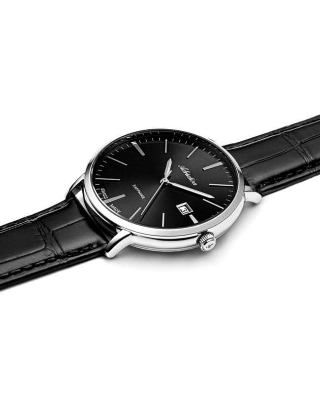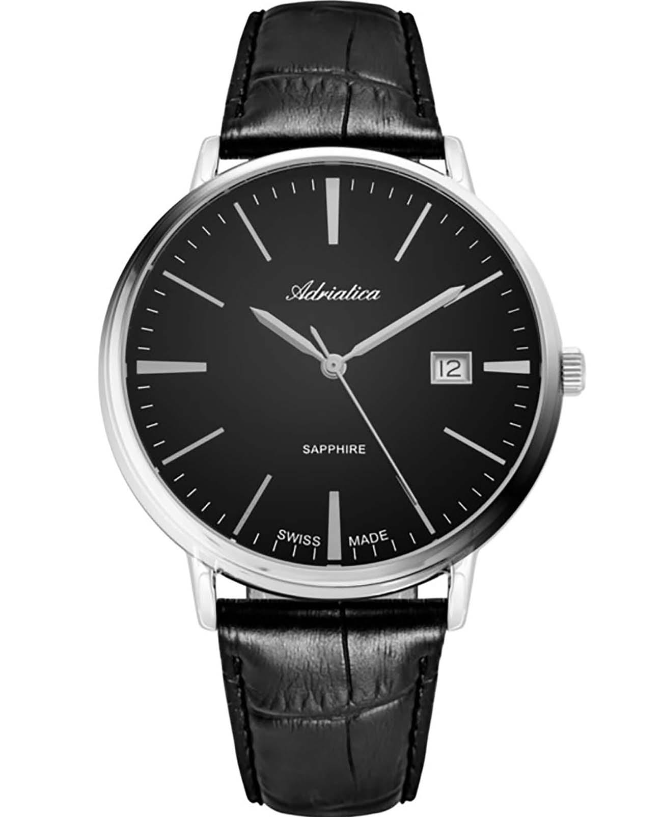 Мужские швейцарские часы Adriatica Classic A1283.5214Q имеют кварцевый механизм с высокой точностью. Корпус часов изготовлен из нержавеющей стали. Сапфировое стеклоСапфировое стеклоПрочный и надёжный материал из кристалла сапфира синтетического происхождения, характеризующийся особой твёрдостью и устойчивостью к царапинам и повреждениям. устойчивое к появлению царапин, обладающее высокой прозрачностью, защищает черный циферблат, на котором расположилось окошко даты в районе 3 часа. Кожаный черный ремешок со стандартной застежкой обеспечивает комфортное ношение и подчеркивает стильный внешний вид. Класс водозащиты WR 30 (3 ATM) делает эти часы практичным выбором для повседневного использования.