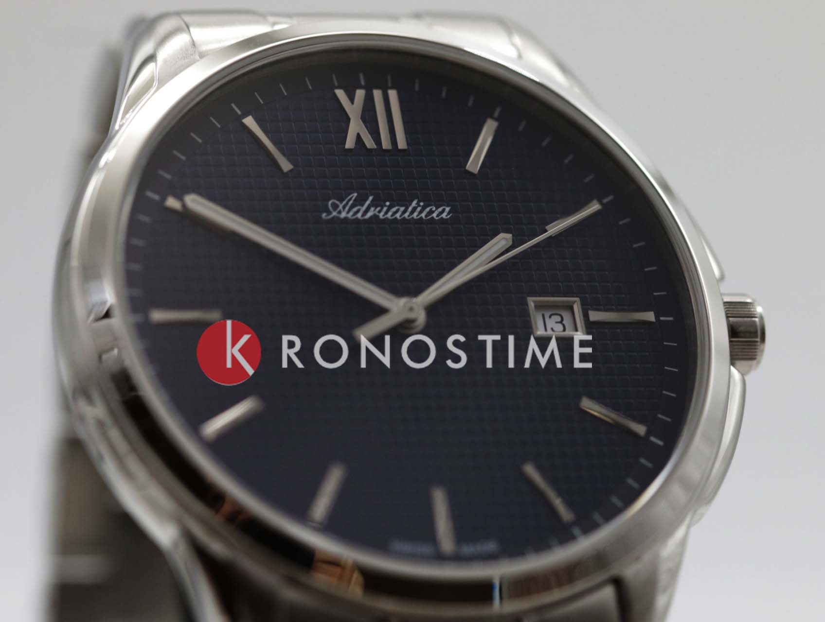 Часы Adriatica A1290.5165Q представляют собой идеальное сочетание элегантности и функциональности, разработанное для современных мужчин. Их стильный синий циферблат защищен сапфировым стекломСапфировое стеклоПрочный и надёжный материал из кристалла сапфира синтетического происхождения, характеризующийся особой твёрдостью и устойчивостью к царапинам и повреждениям., что придает дополнительную устойчивость к царапинам. Корпус из нержавеющей стали подчеркивает их изысканность и долговечность. Надежный кварцевый механизм с калибром ETA F06 (PreciDrive) гарантирует точность времени, а водозащита WR 50 (5 ATM) обеспечивает защиту от воды в различных условиях. Браслет из нержавеющей стали с застежкой «бабочка»Застёжка "бабочка"Такой вид застёжки дополняется предохранителями, помогающими избежать случайного раскрытия браслета. Обладают изящным исполнением. гармонично дополняет общий дизайн и обеспечивает комфортное ношение на запястье. Часы оснащены функцией отображения даты в окошке в положении 3 часа, что добавляет практичности в повседневной жизни. Люминесцентное покрытиеЛюминесцентное покрытиеПозволяет считывать показания времени в темноте. Производители наносят на стрелки, часовые индексы, безель или поверхность циферблата светонакопительный состав, дающий холодное свечение. на стрелках и метках обеспечивает отличную видимость в темноте.