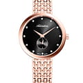 Часы Adriatica A3724.9144Q представляют собой гармоничное сочетание швейцарского качества и изысканного дизайна, подходящие для ценителей стильных аксессуаров. Их черный циферблат, украшенный 12 фианитами, а секундная стрелка вынесена на отдельный циферблат, что придает особую утонченность и элегантность. Корпус диаметром 34 мм и толщиной 7 мм с безелемБезельВнешний ободок, закрепляющий стекло. В спортивных часах так называется поворотное кольцо с делениями на циферблате, выполняет роль таймера – замеряет отрезки времени на шкале. Неподвижный безель – элемент декора. Однонаправленно вращающийся безель на дайверских часах позволяет фиксировать моменты погружения и выныривания на поверхность. выполнен из нержавеющей стали PVDPVDУльтратонкое покрытие наносится в технике вакуумного напыления, сочетает в себе нитрид титана особой прочности со слоем золота или оксида хрома. Несёт в себе декоративную или защитную функцию. покрытием, что обеспечивает долговечность и надежность. Кварцевый механизм гарантирует точность хода, а водозащита 30WR защищает часы от случайных брызг. Браслет из нержавеющей стали с золотистым PVDPVDУльтратонкое покрытие наносится в технике вакуумного напыления, сочетает в себе нитрид титана особой прочности со слоем золота или оксида хрома. Несёт в себе декоративную или защитную функцию. покрытием и ювелирной застежкой обеспечивает комфортное ношение и добавляет изделию дополнительную элегантность. Минеральное стеклоМинеральное стеклоМинеральное стекло представляет собой искусственно выращенный минерал кварца. Такое стекло отличается особой устойчивостью к повреждениям и царапинам. Уступает по некоторым качествам сапфировому стеклу. защищает циферблат от внешних воздействий, сохраняя его безупречный вид. Часы Adriatica A3724.9144Q — это идеальный аксессуар для тех, кто ценит швейцарское качество и утонченный стиль.