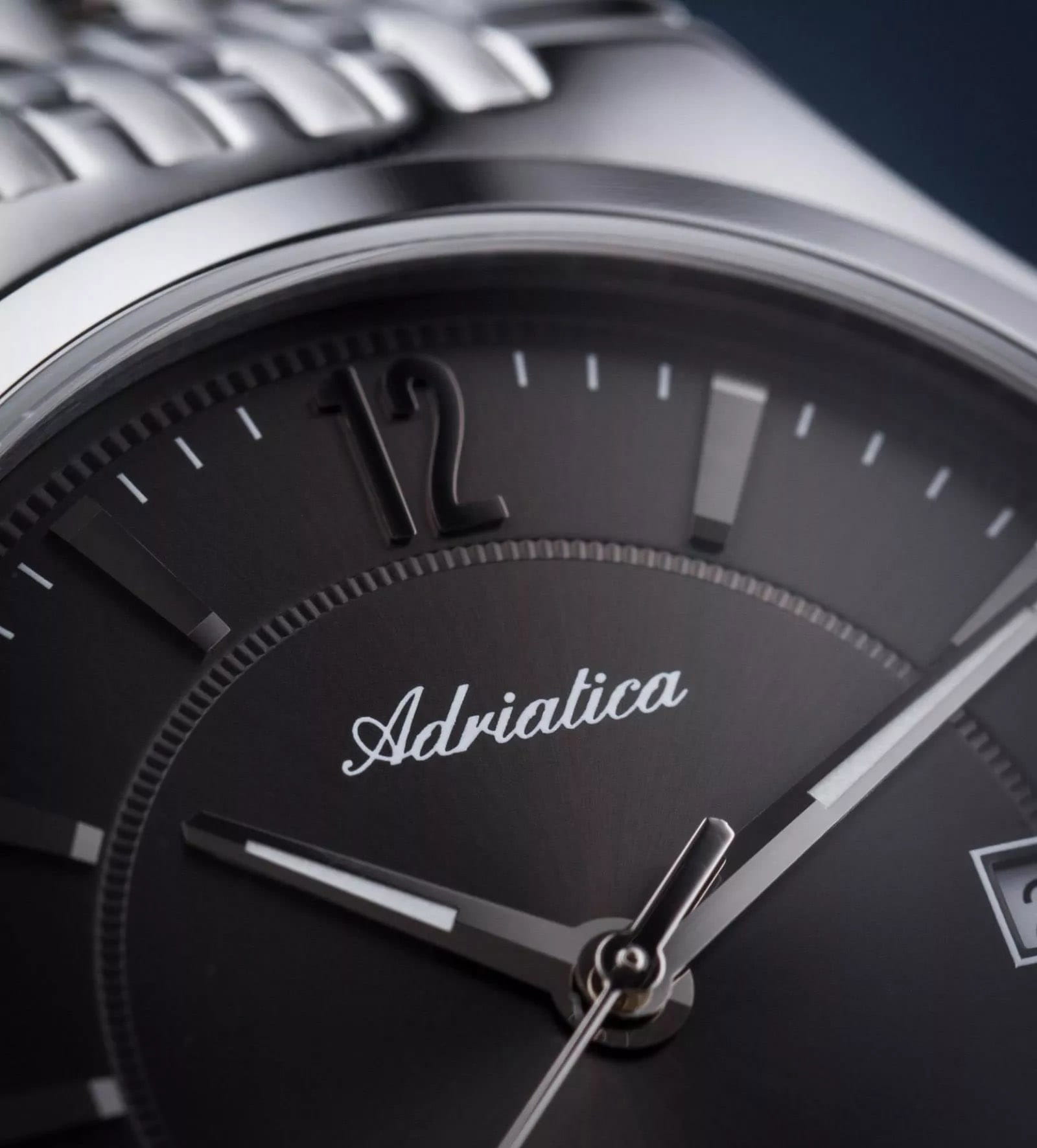 Мужские швейцарские наручные часы Adriatica Premiere A8296.5157Q, кварцевый механизм с высокой точностью. Сапфировое стеклоСапфировое стеклоПрочный и надёжный материал из кристалла сапфира синтетического происхождения, характеризующийся особой твёрдостью и устойчивостью к царапинам и повреждениям. устойчивое к появлению царапин, обладающее высокой прозрачностью. Класс водозащиты: 50 метров, позволит защитить корпус от случайных брызг или капель дождя. Корпус часов изготовлен из стали. Стальной браслет на раскладной застёжкеРаскладная застёжкаТакой тип застёжки используется только на браслетах из металла. Она никогда не раскрывается полностью, происходит разделение на 2 и более частей. Раскладывающая застёжка снизит вероятность потери часов к минимуму..