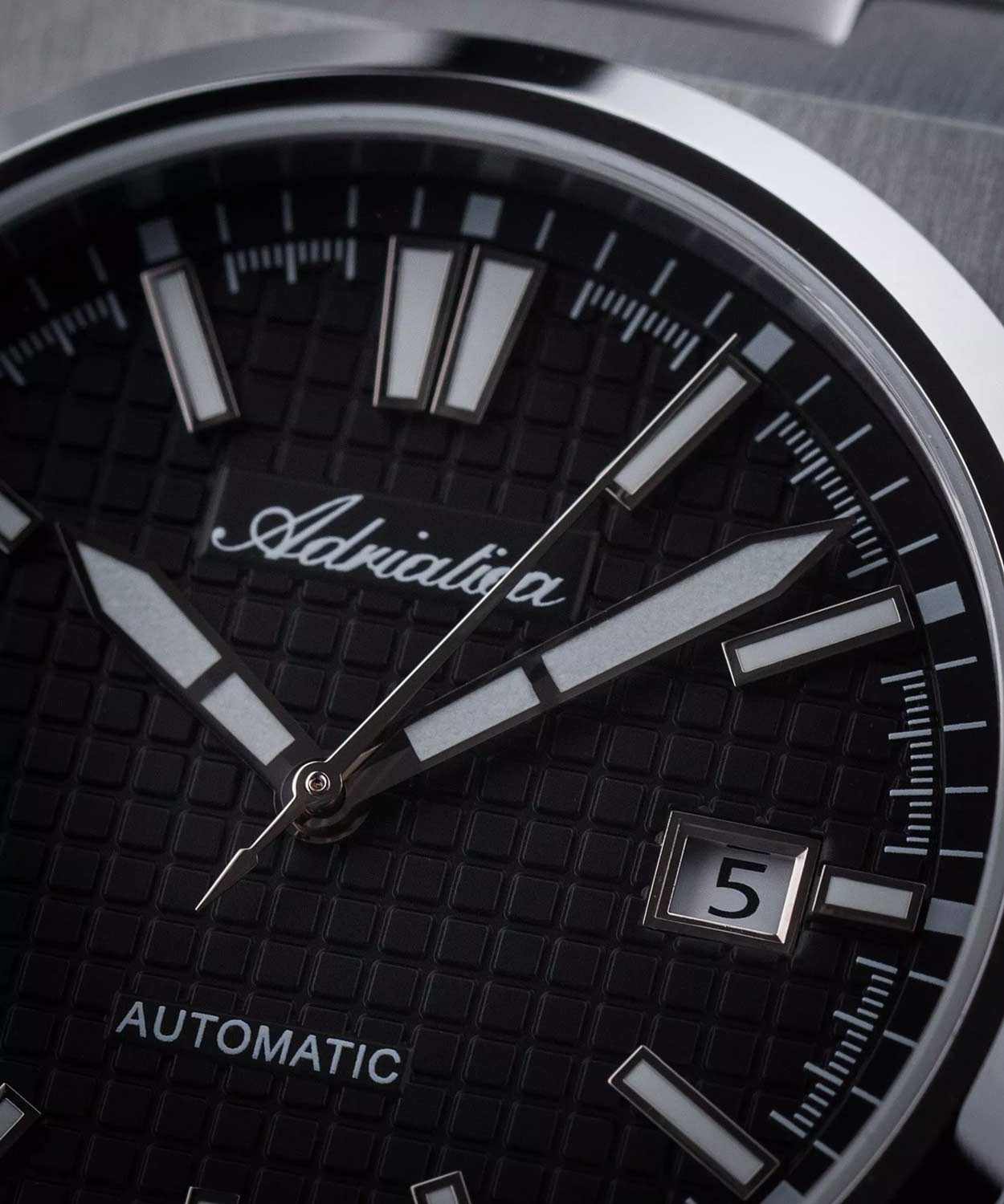 Часы Adriatica Premiere A8326.5114A воплощают в себе элегантность и функциональность, идеально подходящие для современных мужчин, ценящих швейцарское качество. Их черный циферблат защищенный сапфировым стекломСапфировое стеклоПрочный и надёжный материал из кристалла сапфира синтетического происхождения, характеризующийся особой твёрдостью и устойчивостью к царапинам и повреждениям., заключен в корпус из нержавеющей стали диаметром 40 мм и толщиной 10 мм. Эти механические часы с автоподзаводом имеют калибр Ronda 150, который обеспечивает высокую точность, а водозащита 5 ATM делает часы устойчивыми к воздействию воды. Стальной браслет с раскладной застёжкойРаскладная застёжкаТакой тип застёжки используется только на браслетах из металла. Она никогда не раскрывается полностью, происходит разделение на 2 и более частей. Раскладывающая застёжка снизит вероятность потери часов к минимуму. обеспечивает комфортное и надежное ношение. Часы оснащены функцией отображения даты в окошке в положении 3 часа, что добавляет практичности в повседневной жизни. Люминесцентное покрытиеЛюминесцентное покрытиеПозволяет считывать показания времени в темноте. Производители наносят на стрелки, часовые индексы, безель или поверхность циферблата светонакопительный состав, дающий холодное свечение. на стрелках и метках обеспечивает отличную видимость в темноте.