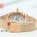 Amalys AMW-182 — женская модель с утончённым классическим дизайном, в которой сочетаются элегантность и практичность. Круглый корпус диаметром 33 мм выполнен из нержавеющей стали с PVD-покрытиемPVDУльтратонкое покрытие наносится в технике вакуумного напыления, сочетает в себе нитрид титана особой прочности со слоем золота или оксида хрома. Несёт в себе декоративную или защитную функцию., гармонирующим с браслетом шириной 16 мм в том же исполнении. Защитную функцию выполняет сапфировое стеклоСапфировое стеклоПрочный и надёжный материал из кристалла сапфира синтетического происхождения, характеризующийся особой твёрдостью и устойчивостью к царапинам и повреждениям., стойкое к царапинам и сохраняющее прозрачность. Механизм — кварцевый, обеспечивающий точность и стабильность хода. Стальной браслет с PVD-покрытиемPVDУльтратонкое покрытие наносится в технике вакуумного напыления, сочетает в себе нитрид титана особой прочности со слоем золота или оксида хрома. Несёт в себе декоративную или защитную функцию. миланского плетения на раскладном замкеРаскладной замокДанный вариант застежки используется только на часах с металлическим браслетом. Отличительная особенность такого крепления в том, что длина браслета становится универсальной и вы можете самостоятельно отрегулировать нужный вам размер – застежка просто двигается по браслету часов. который сочетает надёжность фиксации и удобство повседневного использования. Водозащита 3 ATM защищает часы от случайных брызг и дождя. Циферблат с римскими индексами и изящными стрелками подчёркивает классическую эстетику модели, делая её уместной как в повседневных образах, так и в торжественной обстановке.