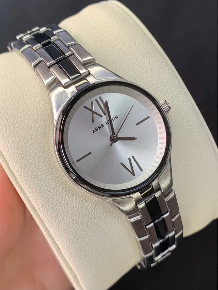 Женские американские наручные часы Anne Klein Metals 4061SVGY, кварцевый механизм с высокой точностью. Класс водозащиты: 30 метров, позволит защитить корпус от случайных брызг или капель дождя. Минеральное стеклоМинеральное стеклоМинеральное стекло представляет собой искусственно выращенный минерал кварца. Такое стекло отличается особой устойчивостью к повреждениям и царапинам. Уступает по некоторым качествам сапфировому стеклу. устойчивое к мелким механическим повреждениям. Корпус и браслет часов изготовлены из стали с частичным IP-покрытиемIP-покрытиеМетод ионного напыления. Демонстрирует повышенную устойчивость к истиранию, окислению и химическим веществам. Под воздействием высокого давления и температуры около 1500°C молекулы металла надёжно соединяются с частицами корпуса часов.. Браслет на ювелирной застёжке. Неподвижный безельБезельВнешний ободок, закрепляющий стекло. В спортивных часах так называется поворотное кольцо с делениями на циферблате, выполняет роль таймера – замеряет отрезки времени на шкале. Неподвижный безель – элемент декора. Однонаправленно вращающийся безель на дайверских часах позволяет фиксировать моменты погружения и выныривания на поверхность. с IP-покрытиемIP-покрытиеМетод ионного напыления. Демонстрирует повышенную устойчивость к истиранию, окислению и химическим веществам. Под воздействием высокого давления и температуры около 1500°C молекулы металла надёжно соединяются с частицами корпуса часов..