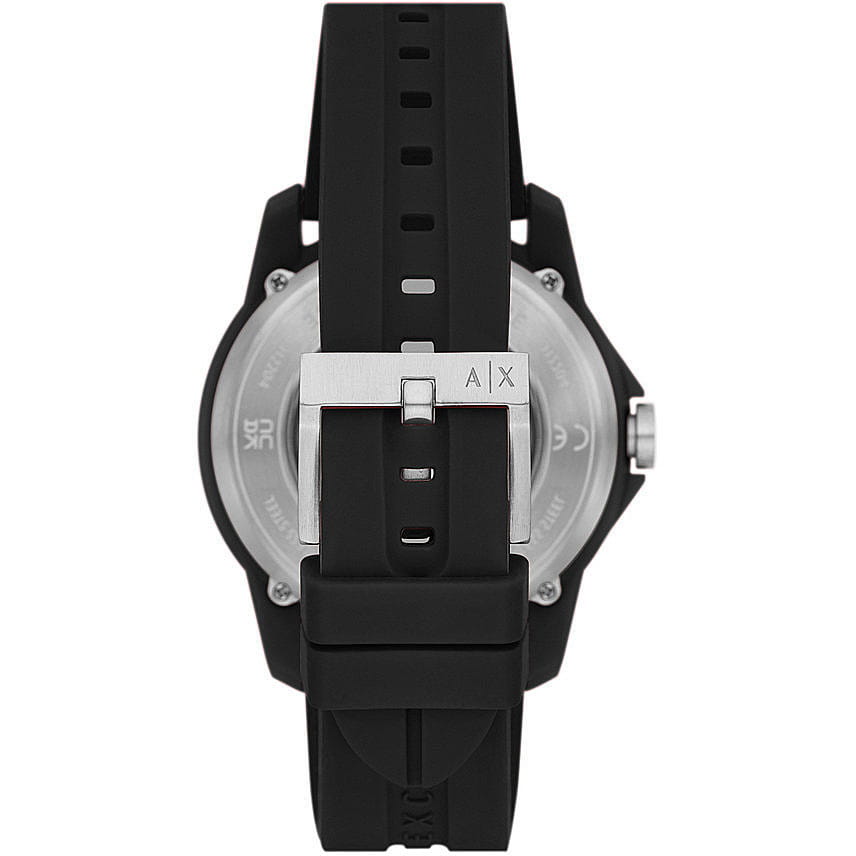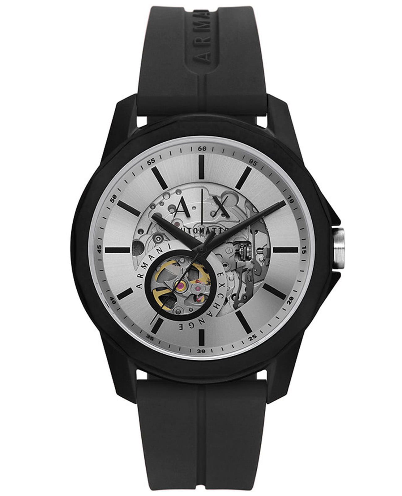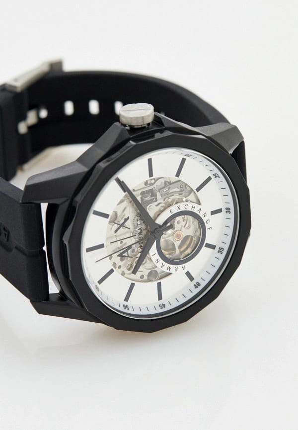 Мужские наручные часы с минеральным стекломМинеральное стеклоМинеральное стекло представляет собой искусственно выращенный минерал кварца. Такое стекло отличается особой устойчивостью к повреждениям и царапинам. Уступает по некоторым качествам сапфировому стеклу. Armani Exchange Banks Automatic AX1726, механический механизм (автоматический калибр) с высокой точностью. Класс водозащиты: 50 метров, позволит защитить корпус от случайных брызг или капель дождя. Корпус часов изготовлен из стали с IP-покрытиемIP-покрытиеМетод ионного напыления. Демонстрирует повышенную устойчивость к истиранию, окислению и химическим веществам. Под воздействием высокого давления и температуры около 1500°C молекулы металла надёжно соединяются с частицами корпуса часов. и пластика черного цвета. Силиконовый ремешок на стандартной застёжке.