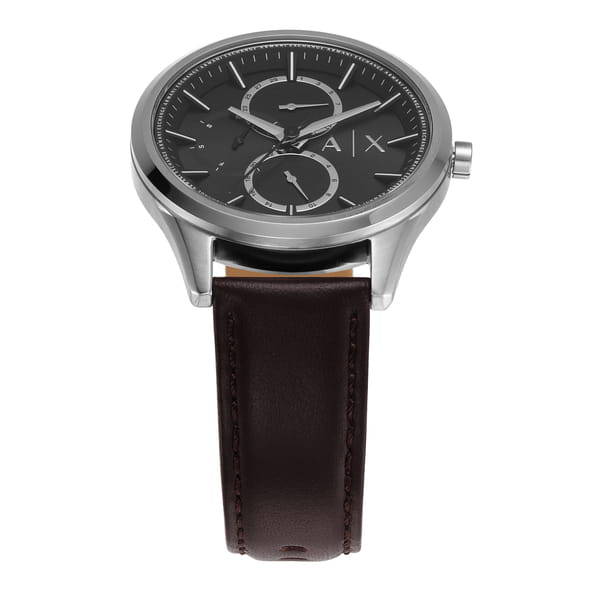 Мужские наручные часы с минеральным стекломМинеральное стеклоМинеральное стекло представляет собой искусственно выращенный минерал кварца. Такое стекло отличается особой устойчивостью к повреждениям и царапинам. Уступает по некоторым качествам сапфировому стеклу. Armani Exchange Dante AX1868, кварцевый механизм с высокой точностью. Класс водозащиты: 50 метров, позволит защитить корпус от случайных брызг или капель дождя. Корпус часов изготовлен из стали. Кожаный ремешок на стандартной застёжке.