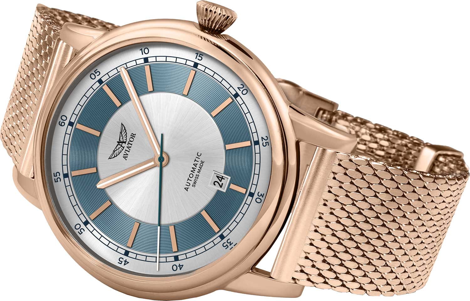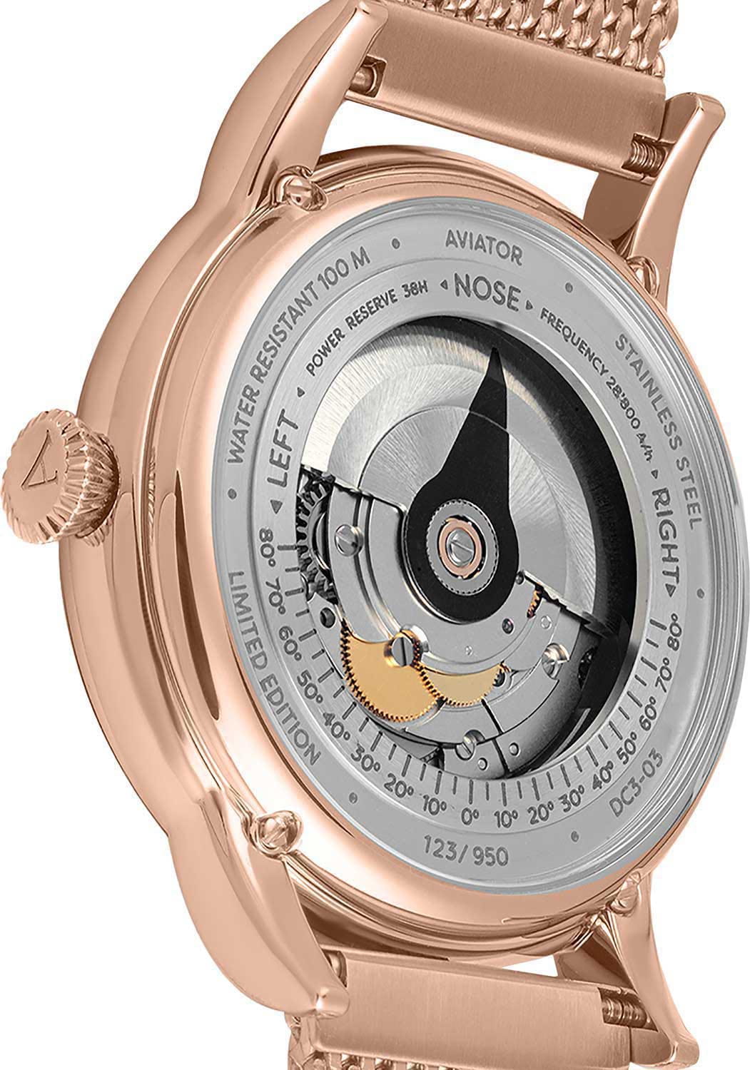Aviator Douglas DC-3 V.3.32.2.272.5 — швейцарские часы в классике авиадизайна, сочетающие безупречную читаемость и высокую надёжность. Лимитированная серия - 950 экземпляров. Корпус диаметром 45 мм выполнен из нержавеющей стали  316L с PVD-покрытиемPVDУльтратонкое покрытие наносится в технике вакуумного напыления, сочетает в себе нитрид титана особой прочности со слоем золота или оксида хрома. Несёт в себе декоративную или защитную функцию.. Накладные метки выполнены в виде штрихов. Окошко даты находится в положении 6 часов. Часовые метки и стрелки покрыты люминесцентным покрытиемЛюминесцентное покрытиеПозволяет считывать показания времени в темноте. Производители наносят на стрелки, часовые индексы, безель или поверхность циферблата светонакопительный состав, дающий холодное свечение. Superluminova, позволяющим легко определять время даже в тёмное время суток. Поверхность защищена прочным сапфировым стекломСапфировое стеклоПрочный и надёжный материал из кристалла сапфира синтетического происхождения, характеризующийся особой твёрдостью и устойчивостью к царапинам и повреждениям. с антибликовым покрытиемАнтибликовое покрытиеСлой оксида металла в 0,13-0,3 микрон, благодаря которому стекло часов не бликует и не отражает свет. Антибликовое покрытие уменьшает отражение света в 10 раз, обеспечивая отличную читаемость показателей циферблата., устойчивым к царапинам. Сердце модели — швейцарский механизм Sellita SW 200-1, известный своей точностью и долговечностью. Водозащита 100 метров, позволит плавать, нырять и заниматься другими водными видами спорта. Завинчивающаяся головка и задняя крышка обеспечивают уверенную ударопрочностьУдаропрочный корпусМеханизм заключён в корпус, выполненный из современных материалов, устойчивых к ударам, механическим повреждениям и падению с высоты: инновационный пластик, карбон, нержавеющая сталь, титан. и надёжную защиту от влаги и пыли. В механизме 26 камней, запас хода 38 часов. Модель дополнена стальным браслетом миланского плетения с PVD-покрытиемPVDУльтратонкое покрытие наносится в технике вакуумного напыления, сочетает в себе нитрид титана особой прочности со слоем золота или оксида хрома. Несёт в себе декоративную или защитную функцию., закреплённым с помощью раскладной застёжкиРаскладная застёжкаТакой тип застёжки используется только на браслетах из металла. Она никогда не раскрывается полностью, происходит разделение на 2 и более частей. Раскладывающая застёжка снизит вероятность потери часов к минимуму. — для максимального комфорта и лёгкости в повседневном использовании. Циферблат выполнен по технологии sun-ray (солнечные лучи). Коллекция Douglas была разработана в честь известного американского пассажирского самолета Douglas DC-3. Aviator — это образец лётной точности, инженерной чёткости и сдержанной роскоши, идеально подходящий для тех, кто ценит функциональность и уверенность в каждом элементе.