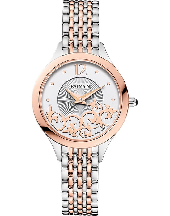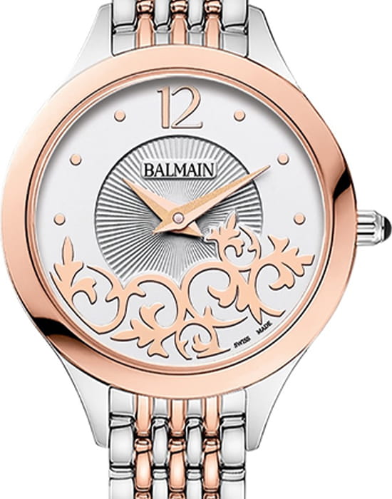 Женские часы Balmain B3918.33.16 кварцевый механизм с высокой точностью. Сапфировое стеклоСапфировое стеклоПрочный и надёжный материал из кристалла сапфира синтетического происхождения, характеризующийся особой твёрдостью и устойчивостью к царапинам и повреждениям. устойчивое к появлению царапин, обладающее высокой прозрачностью. Корпус изготовлен из нержавеющей стали. Класс водозащиты: 50 метров, позволит защитить корпус от случайных брызг или капель дождя. Стальной браслет с частичным PVD-покрытиемPVDУльтратонкое покрытие наносится в технике вакуумного напыления, сочетает в себе нитрид титана особой прочности со слоем золота или оксида хрома. Несёт в себе декоративную или защитную функцию.. на застёжке «бабочка» с кнопкамиЗастёжка "бабочка"Такой вид застёжки дополняется предохранителями, помогающими избежать случайного раскрытия браслета. Обладают изящным исполнением. . БезельБезельВнешний ободок, закрепляющий стекло. В спортивных часах так называется поворотное кольцо с делениями на циферблате, выполняет роль таймера – замеряет отрезки времени на шкале. Неподвижный безель – элемент декора. Однонаправленно вращающийся безель на дайверских часах позволяет фиксировать моменты погружения и выныривания на поверхность. с PVD-покрытиемPVDУльтратонкое покрытие наносится в технике вакуумного напыления, сочетает в себе нитрид титана особой прочности со слоем золота или оксида хрома. Несёт в себе декоративную или защитную функцию..
