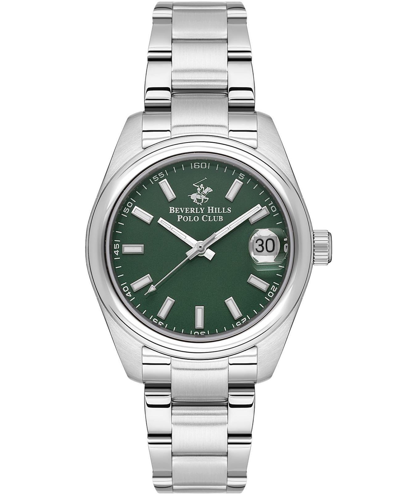 Женские часы Beverly Hills Polo BP3597X.370 с надёжным кварцевым механизмом. Минеральное стеклоМинеральное стеклоМинеральное стекло представляет собой искусственно выращенный минерал кварца. Такое стекло отличается особой устойчивостью к повреждениям и царапинам. Уступает по некоторым качествам сапфировому стеклу. устойчивое к появлению царапин, обладающее высокой прозрачностью. Класс водозащиты: 50 метров, позволит защитить корпус от случайных брызг или капель дождя. Корпус и браслет часов изготовлены из нержавеющей стали. Стальной браслет на раскладной застёжкеРаскладная застёжкаТакой тип застёжки используется только на браслетах из металла. Она никогда не раскрывается полностью, происходит разделение на 2 и более частей. Раскладывающая застёжка снизит вероятность потери часов к минимуму.. Окошко дня недели находится в положении 3 часа. Стрелки и метки с люминесцентным покрытиемЛюминесцентное покрытиеПозволяет считывать показания времени в темноте. Производители наносят на стрелки, часовые индексы, безель или поверхность циферблата светонакопительный состав, дающий холодное свечение..