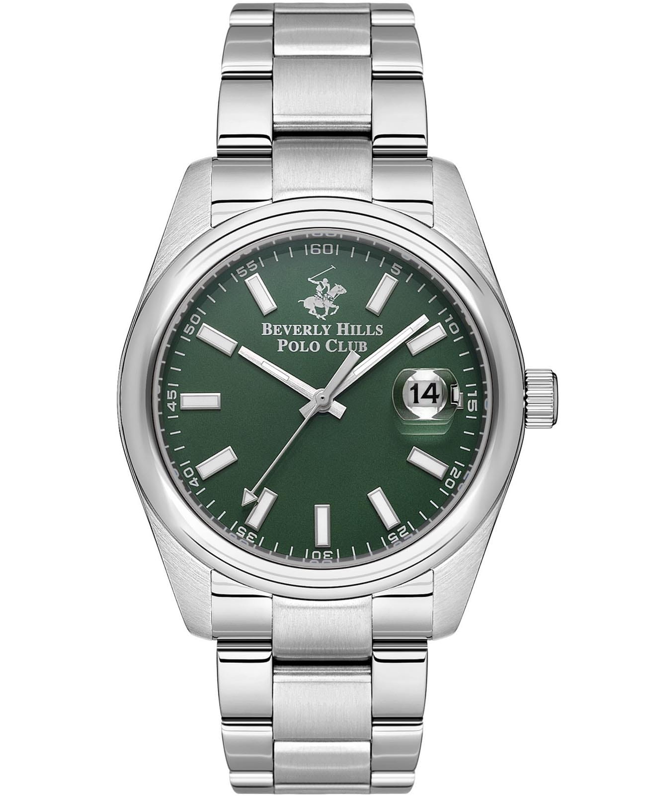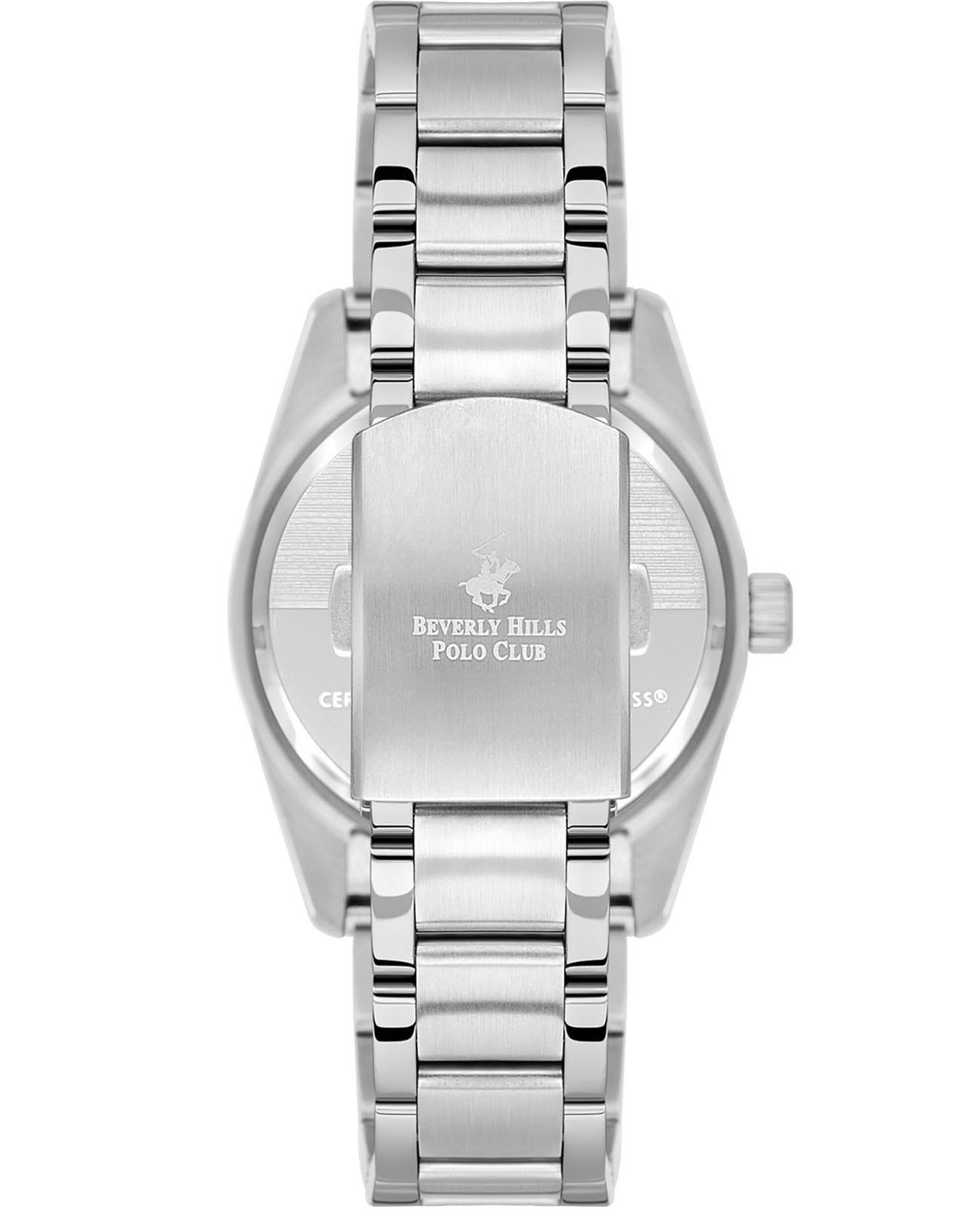 Мужские часы Beverly Hills Polo BP3598X.370 с надёжным кварцевым механизмом. Минеральное стеклоМинеральное стеклоМинеральное стекло представляет собой искусственно выращенный минерал кварца. Такое стекло отличается особой устойчивостью к повреждениям и царапинам. Уступает по некоторым качествам сапфировому стеклу. устойчивое к появлению царапин, обладающее высокой прозрачностью. Класс водозащиты: 50 метров, позволит защитить корпус от случайных брызг или капель дождя. Корпус и браслет часов изготовлены из нержавеющей стали. Стальной браслет на раскладной застёжкеРаскладная застёжкаТакой тип застёжки используется только на браслетах из металла. Она никогда не раскрывается полностью, происходит разделение на 2 и более частей. Раскладывающая застёжка снизит вероятность потери часов к минимуму.. Окошко дня недели находится в положении 3 часа. Стрелки и метки с люминесцентным покрытиемЛюминесцентное покрытиеПозволяет считывать показания времени в темноте. Производители наносят на стрелки, часовые индексы, безель или поверхность циферблата светонакопительный состав, дающий холодное свечение..