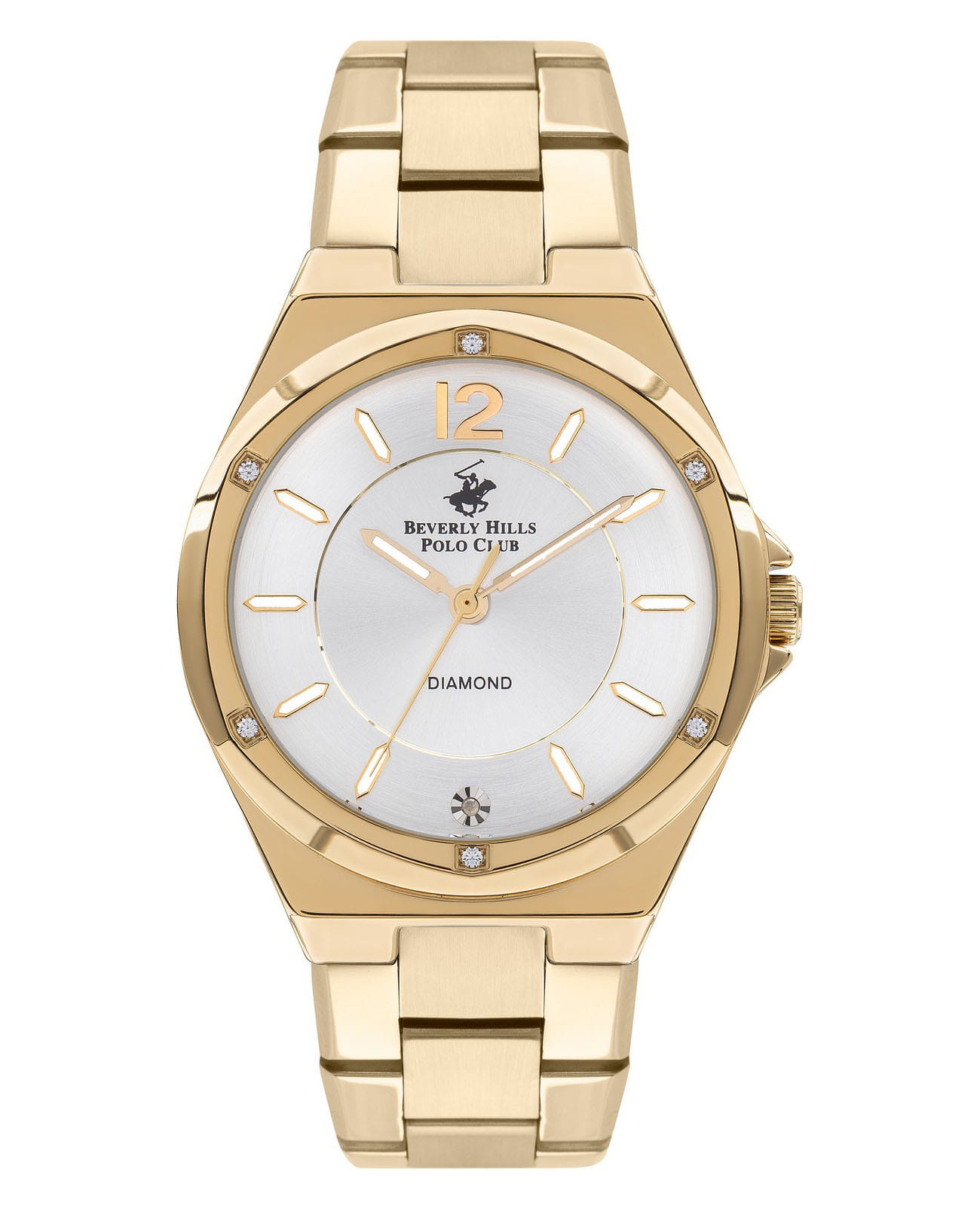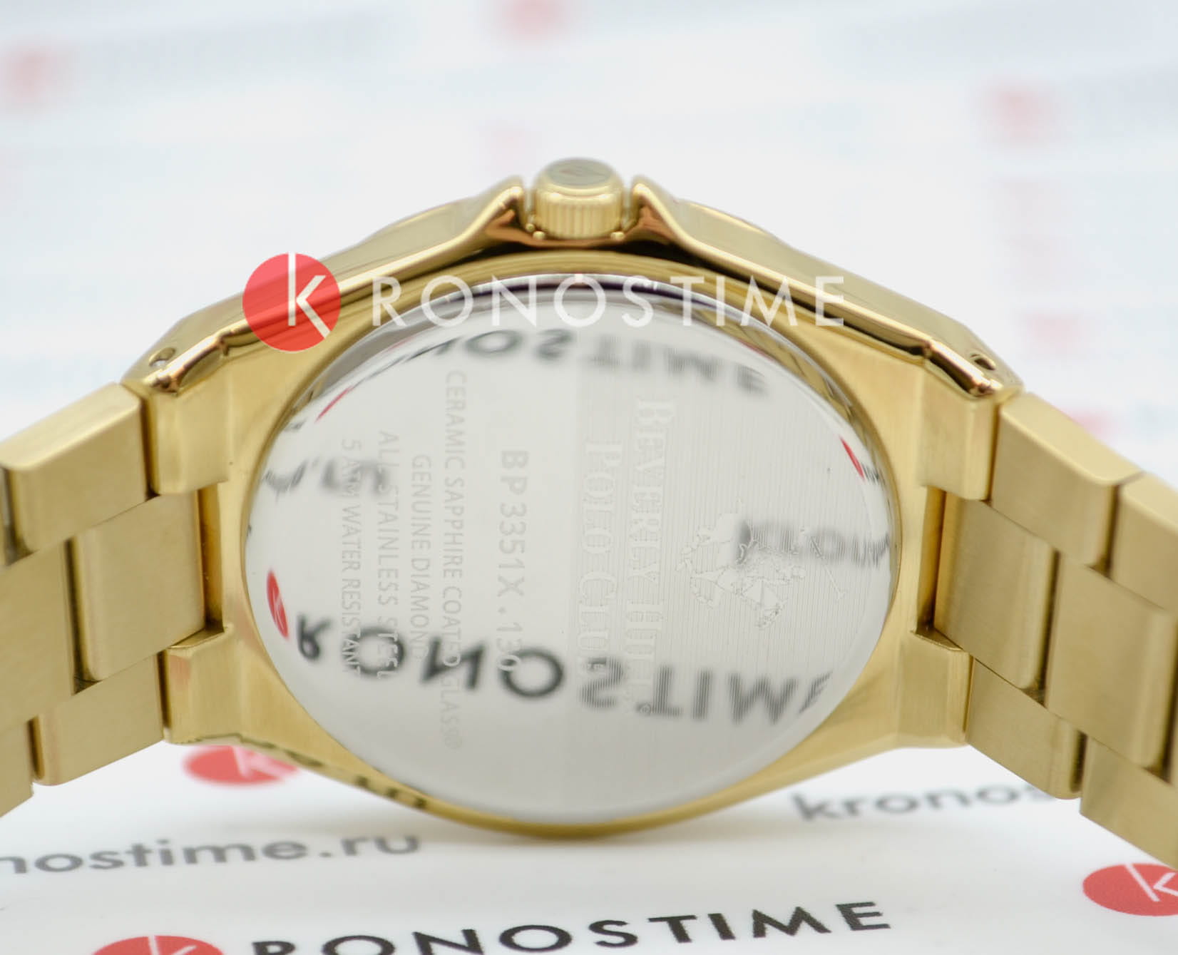 Американские женские часы с минеральным стекломМинеральное стеклоМинеральное стекло представляет собой искусственно выращенный минерал кварца. Такое стекло отличается особой устойчивостью к повреждениям и царапинам. Уступает по некоторым качествам сапфировому стеклу. Beverly Hills Polo Club BP3351X.130, кварцевый механизм с высокой точностью. Класс водозащиты: 30 метров, позволит защитить корпус от случайных брызг или капель дождя. Корпус часов изготовлен из стали с IP-покрытиемIP-покрытиеМетод ионного напыления. Демонстрирует повышенную устойчивость к истиранию, окислению и химическим веществам. Под воздействием высокого давления и температуры около 1500°C молекулы металла надёжно соединяются с частицами корпуса часов.. БезельБезельВнешний ободок, закрепляющий стекло. В спортивных часах так называется поворотное кольцо с делениями на циферблате, выполняет роль таймера – замеряет отрезки времени на шкале. Неподвижный безель – элемент декора. Однонаправленно вращающийся безель на дайверских часах позволяет фиксировать моменты погружения и выныривания на поверхность. инкрустирован кристаллами. Стрелки и метки с люминесцентным покрытиемЛюминесцентное покрытиеПозволяет считывать показания времени в темноте. Производители наносят на стрелки, часовые индексы, безель или поверхность циферблата светонакопительный состав, дающий холодное свечение.. Браслет с раскладной застёжкойРаскладная застёжкаТакой тип застёжки используется только на браслетах из металла. Она никогда не раскрывается полностью, происходит разделение на 2 и более частей. Раскладывающая застёжка снизит вероятность потери часов к минимуму..