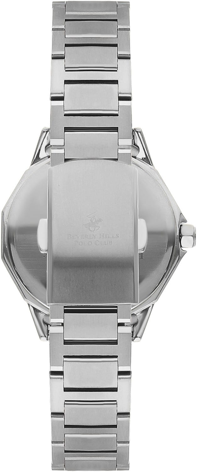 Американские женские часы Beverly Hills Polo Club BP3376X.330 с минеральным стекломМинеральное стеклоМинеральное стекло представляет собой искусственно выращенный минерал кварца. Такое стекло отличается особой устойчивостью к повреждениям и царапинам. Уступает по некоторым качествам сапфировому стеклу., кварцевый механизм с высокой точностью. Корпус и браслет часов изготовлены из нержавеющей стали. Циферблат украшен бриллиантом. Окошко даты находится в положении 6 часов. Класс водозащиты: 50 метров, позволит защитить корпус от случайных брызг или капель дождя. Браслет с раскладной застёжкойРаскладная застёжкаТакой тип застёжки используется только на браслетах из металла. Она никогда не раскрывается полностью, происходит разделение на 2 и более частей. Раскладывающая застёжка снизит вероятность потери часов к минимуму..