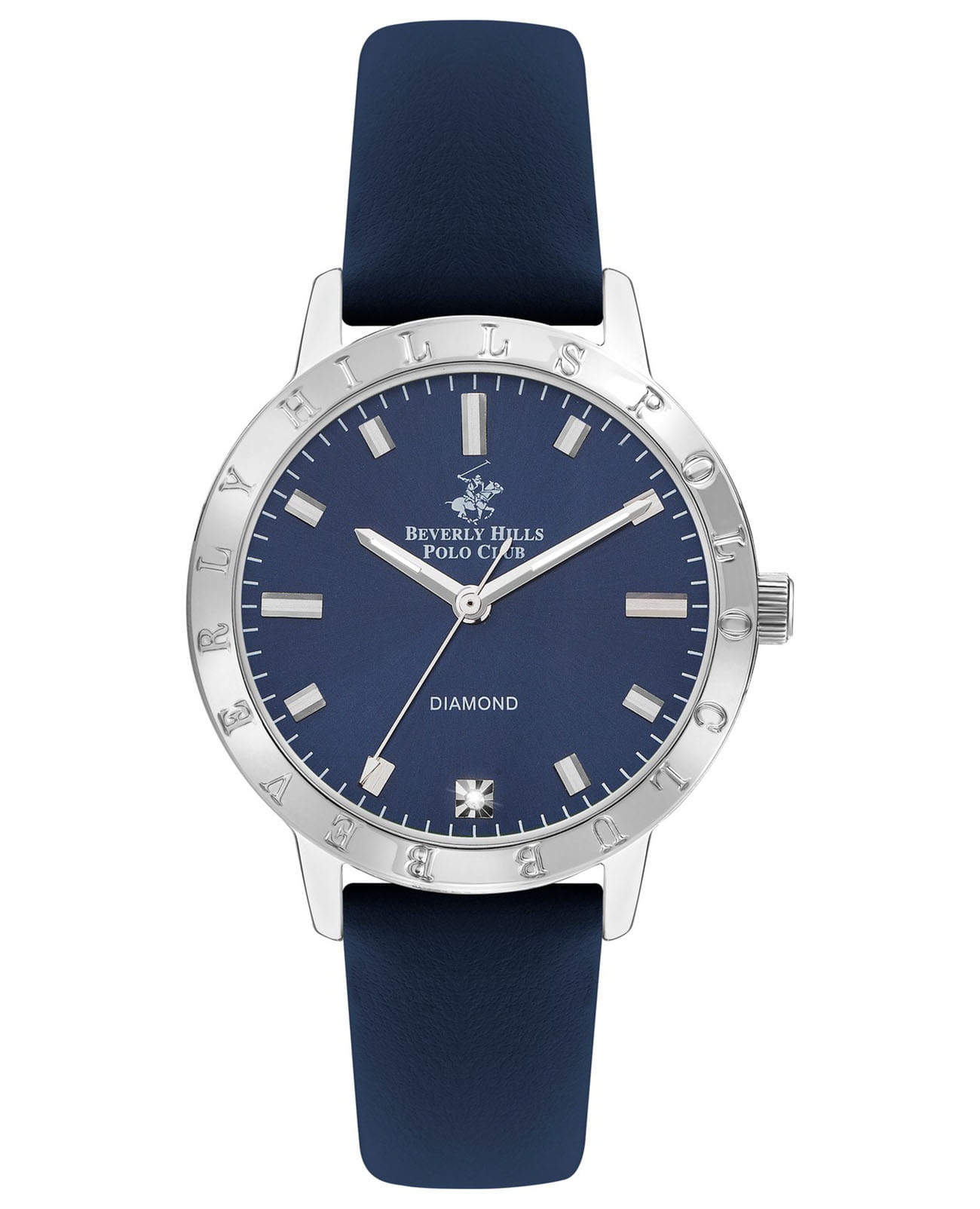 Американские женские часы с минеральным стекломМинеральное стеклоМинеральное стекло представляет собой искусственно выращенный минерал кварца. Такое стекло отличается особой устойчивостью к повреждениям и царапинам. Уступает по некоторым качествам сапфировому стеклу. Beverly Hills Polo Club BP3387C.399, кварцевый механизм с высокой точностью. Корпус часов изготовлен из нержавеющей стали. На неподвижном безелеБезельВнешний ободок, закрепляющий стекло. В спортивных часах так называется поворотное кольцо с делениями на циферблате, выполняет роль таймера – замеряет отрезки времени на шкале. Неподвижный безель – элемент декора. Однонаправленно вращающийся безель на дайверских часах позволяет фиксировать моменты погружения и выныривания на поверхность. из нержавеющей стали указано название бренда. Стрелки с люминесцентной подсветкойЛюминесцентное покрытиеПозволяет считывать показания времени в темноте. Производители наносят на стрелки, часовые индексы, безель или поверхность циферблата светонакопительный состав, дающий холодное свечение.. Циферблат украшен кристаллом. Класс водозащиты: 50 метров, позволит защитить корпус от случайных брызг или капель дождя. Кожаный ремешок с классической застежкой.