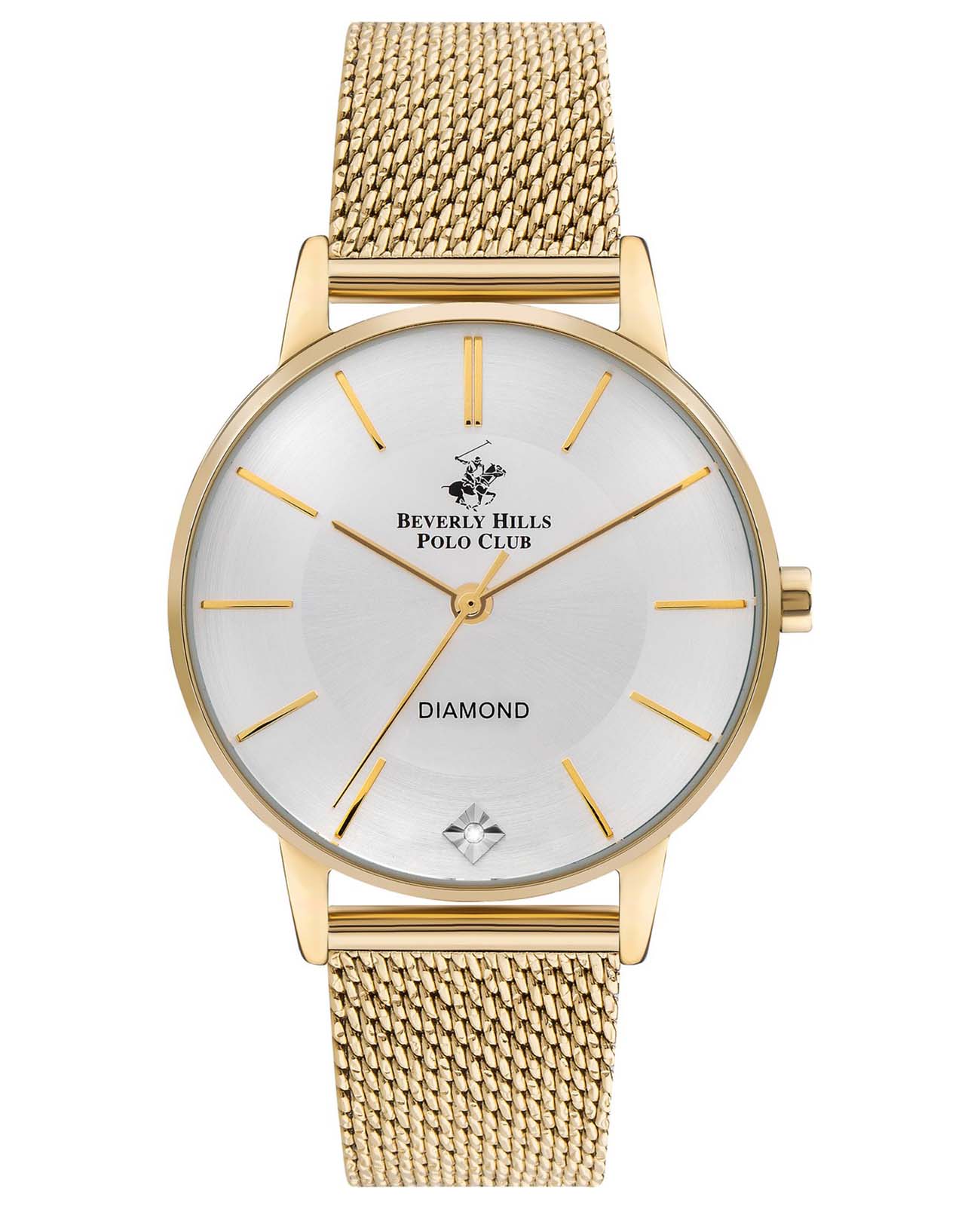 Американские женские часы с минеральным стекломМинеральное стеклоМинеральное стекло представляет собой искусственно выращенный минерал кварца. Такое стекло отличается особой устойчивостью к повреждениям и царапинам. Уступает по некоторым качествам сапфировому стеклу. Beverly Hills Polo Club BP3394C.130, кварцевый механизм с высокой точностью. Корпус и браслет часов изготовлены из нержавеющей стали с IP-покрытиемIP-покрытиеМетод ионного напыления. Демонстрирует повышенную устойчивость к истиранию, окислению и химическим веществам. Под воздействием высокого давления и температуры около 1500°C молекулы металла надёжно соединяются с частицами корпуса часов.. Циферблат инкрустирован бриллиантом. Класс водозащиты: 50 метров, позволит защитить корпус от случайных брызг или капель дождя. Стальной браслет миланского плетения на раскладной застёжкеРаскладная застёжкаТакой тип застёжки используется только на браслетах из металла. Она никогда не раскрывается полностью, происходит разделение на 2 и более частей. Раскладывающая застёжка снизит вероятность потери часов к минимуму..