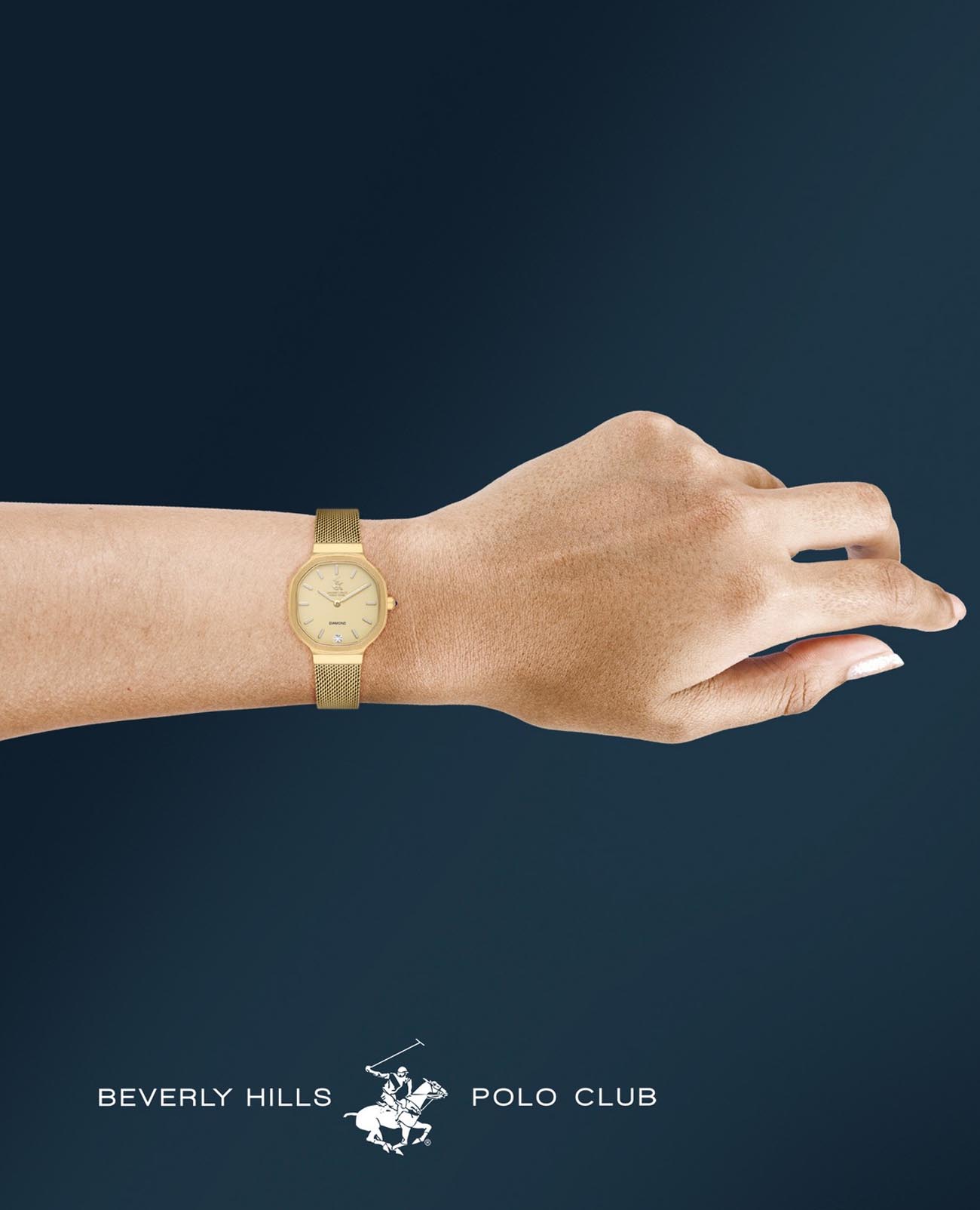 Женские наручные часы Beverly Hills Polo Club Quartz BP3621X.110 с надёжным кварцевым механизмом. Минеральное стеклоМинеральное стеклоМинеральное стекло представляет собой искусственно выращенный минерал кварца. Такое стекло отличается особой устойчивостью к повреждениям и царапинам. Уступает по некоторым качествам сапфировому стеклу. устойчивое к мелким механическим повреждениям. Корпус часов изготовлен из нержавеющей стали с IP-покрытиемIP-покрытиеМетод ионного напыления. Демонстрирует повышенную устойчивость к истиранию, окислению и химическим веществам. Под воздействием высокого давления и температуры около 1500°C молекулы металла надёжно соединяются с частицами корпуса часов.. Стрелки и метки с люминесцентным покрытиемЛюминесцентное покрытиеПозволяет считывать показания времени в темноте. Производители наносят на стрелки, часовые индексы, безель или поверхность циферблата светонакопительный состав, дающий холодное свечение.. Класс водозащиты: 50 метров, позволит защитить корпус от случайных брызг или капель дождя. Стальной браслет миланского плетения с IP-покрытиемIP-покрытиеМетод ионного напыления. Демонстрирует повышенную устойчивость к истиранию, окислению и химическим веществам. Под воздействием высокого давления и температуры около 1500°C молекулы металла надёжно соединяются с частицами корпуса часов. на раскладном замкеРаскладной замокДанный вариант застежки используется только на часах с металлическим браслетом. Отличительная особенность такого крепления в том, что длина браслета становится универсальной и вы можете самостоятельно отрегулировать нужный вам размер – застежка просто двигается по браслету часов..