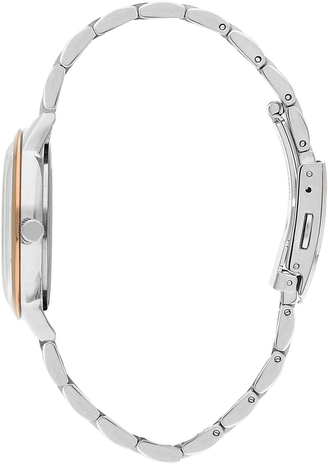 Американские женские часы с минеральным стекломМинеральное стеклоМинеральное стекло представляет собой искусственно выращенный минерал кварца. Такое стекло отличается особой устойчивостью к повреждениям и царапинам. Уступает по некоторым качествам сапфировому стеклу. Beverly Hills Polo Club BP3388C.590, кварцевый механизм с высокой точностью. Корпус и браслет часов изготовлены из нержавеющей стали с частичным IP-покрытиемIP-покрытиеМетод ионного напыления. Демонстрирует повышенную устойчивость к истиранию, окислению и химическим веществам. Под воздействием высокого давления и температуры около 1500°C молекулы металла надёжно соединяются с частицами корпуса часов.. Неподвижный безельБезельВнешний ободок, закрепляющий стекло. В спортивных часах так называется поворотное кольцо с делениями на циферблате, выполняет роль таймера – замеряет отрезки времени на шкале. Неподвижный безель – элемент декора. Однонаправленно вращающийся безель на дайверских часах позволяет фиксировать моменты погружения и выныривания на поверхность. из нержавеющей стали IP-покрытиемIP-покрытиеМетод ионного напыления. Демонстрирует повышенную устойчивость к истиранию, окислению и химическим веществам. Под воздействием высокого давления и температуры около 1500°C молекулы металла надёжно соединяются с частицами корпуса часов.. Циферблат украшен бриллиантом. Класс водозащиты: 50 метров, позволит защитить корпус от случайных брызг или капель дождя. Стальной браслет на раскладной застёжкеРаскладная застёжкаТакой тип застёжки используется только на браслетах из металла. Она никогда не раскрывается полностью, происходит разделение на 2 и более частей. Раскладывающая застёжка снизит вероятность потери часов к минимуму..