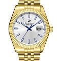BEVERLY HILLS POLO CLUB BP3018X.130 — стильные мужские часы, сочетающие спортивную динамику и функциональность. Крупный корпус выполнен из нержавеющей стали с IP-покрытиемIP-покрытиеМетод ионного напыления. Демонстрирует повышенную устойчивость к истиранию, окислению и химическим веществам. Под воздействием высокого давления и температуры около 1500°C молекулы металла надёжно соединяются с частицами корпуса часов. золотистого цвета, диаметром 41 мм, гармонично дополнен стальным браслетом на застёжке-бабочке с кнопкамиЗастёжка "бабочка"Такой вид застёжки дополняется предохранителями, помогающими избежать случайного раскрытия браслета. Обладают изящным исполнением. . Рифленый неподвижный безельБезельВнешний ободок, закрепляющий стекло. В спортивных часах так называется поворотное кольцо с делениями на циферблате, выполняет роль таймера – замеряет отрезки времени на шкале. Неподвижный безель – элемент декора. Однонаправленно вращающийся безель на дайверских часах позволяет фиксировать моменты погружения и выныривания на поверхность.. Циферблат с акцентными метками и стрелками с люминесцентным покрытиемЛюминесцентное покрытиеПозволяет считывать показания времени в темноте. Производители наносят на стрелки, часовые индексы, безель или поверхность циферблата светонакопительный состав, дающий холодное свечение. делает модель более практичной. Минеральное стеклоМинеральное стеклоМинеральное стекло представляет собой искусственно выращенный минерал кварца. Такое стекло отличается особой устойчивостью к повреждениям и царапинам. Уступает по некоторым качествам сапфировому стеклу. с сапфировым покрытием защищает циферблат от царапин, а кварцевый механизм обеспечивает высокую точность. Окошко даты находится в положении 3 часа. Благодаря своей универсальной эстетике эти часы уместны и в деловой среде, и в повседневном образе. Идеальный выбор для тех, кто ценит элегантный дизайн и качество.