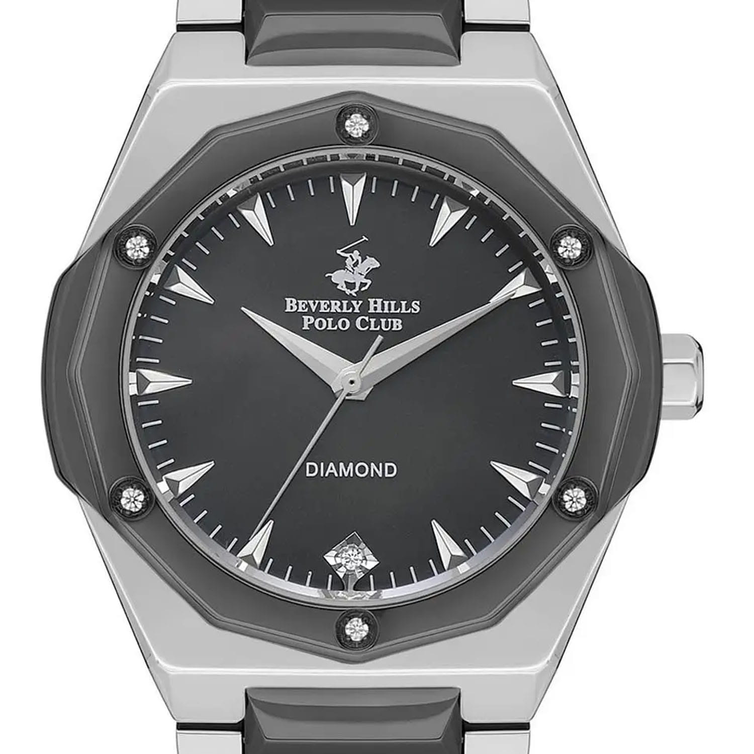 Женские наручные часы Beverly Hills Polo Club BP3561X.350 с надёжным кварцевым механизмом. Корпус часов изговлен из нержавеющей стали. Минеральное стеклоМинеральное стеклоМинеральное стекло представляет собой искусственно выращенный минерал кварца. Такое стекло отличается особой устойчивостью к повреждениям и царапинам. Уступает по некоторым качествам сапфировому стеклу. устойчивое к мелким механическим повреждениям. Стальной браслет с IP-покрытиемIP-покрытиеМетод ионного напыления. Демонстрирует повышенную устойчивость к истиранию, окислению и химическим веществам. Под воздействием высокого давления и температуры около 1500°C молекулы металла надёжно соединяются с частицами корпуса часов. на раскладной застёжкеРаскладная застёжкаТакой тип застёжки используется только на браслетах из металла. Она никогда не раскрывается полностью, происходит разделение на 2 и более частей. Раскладывающая застёжка снизит вероятность потери часов к минимуму.. Циферблат и безельБезельВнешний ободок, закрепляющий стекло. В спортивных часах так называется поворотное кольцо с делениями на циферблате, выполняет роль таймера – замеряет отрезки времени на шкале. Неподвижный безель – элемент декора. Однонаправленно вращающийся безель на дайверских часах позволяет фиксировать моменты погружения и выныривания на поверхность. украшены кристаллами. Класс водозащиты: 50 метров, позволит защитить корпус от случайных брызг или капель дождя.
