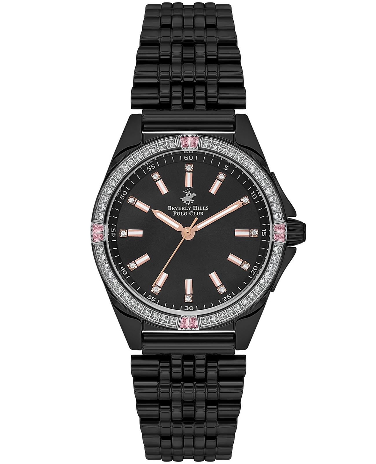 Женские наручные часы Beverly Hills Polo Club BP3587C.650 с надёжным автоматическим механизмом. Минеральное стеклоМинеральное стеклоМинеральное стекло представляет собой искусственно выращенный минерал кварца. Такое стекло отличается особой устойчивостью к повреждениям и царапинам. Уступает по некоторым качествам сапфировому стеклу. устойчивое к мелким механическим повреждениям. Корпус часов изготовлен из суперметалла с IP-покрытиемIP-покрытиеМетод ионного напыления. Демонстрирует повышенную устойчивость к истиранию, окислению и химическим веществам. Под воздействием высокого давления и температуры около 1500°C молекулы металла надёжно соединяются с частицами корпуса часов.. Стальной браслет на раскладной застёжкеРаскладная застёжкаТакой тип застёжки используется только на браслетах из металла. Она никогда не раскрывается полностью, происходит разделение на 2 и более частей. Раскладывающая застёжка снизит вероятность потери часов к минимуму.. Класс водозащиты: 50 метров, позволит защитить корпус от случайных брызг или капель дождя. БезельБезельВнешний ободок, закрепляющий стекло. В спортивных часах так называется поворотное кольцо с делениями на циферблате, выполняет роль таймера – замеряет отрезки времени на шкале. Неподвижный безель – элемент декора. Однонаправленно вращающийся безель на дайверских часах позволяет фиксировать моменты погружения и выныривания на поверхность. и циферблат инкрустированы кристаллами циркония.