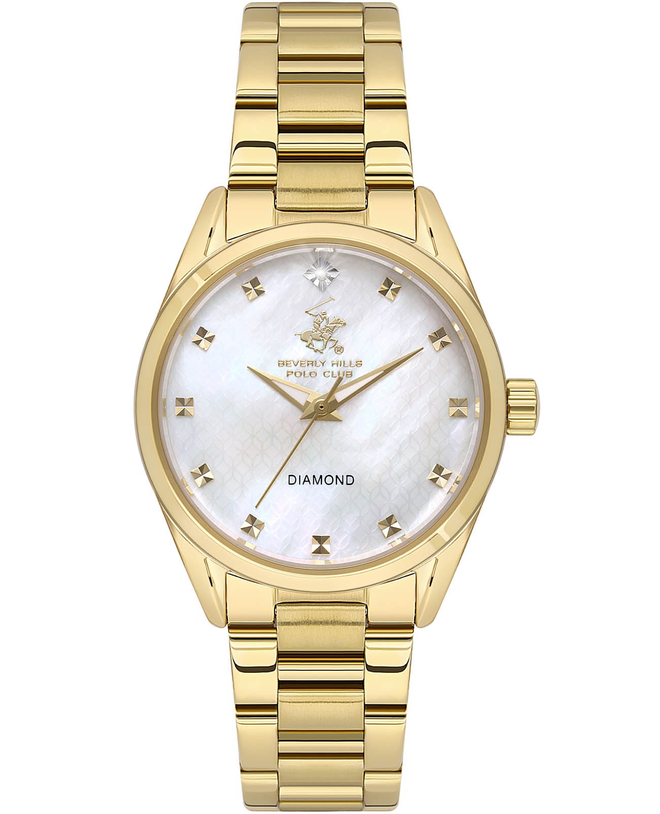 Американские женские часы Beverly Hills Polo Club BP3601C.120 - это стильный женский аксессуар, который сочетает элегантный дизайн и практичность. Корпус выполнен из суперметалла с IP-покрытиемIP-покрытиеМетод ионного напыления. Демонстрирует повышенную устойчивость к истиранию, окислению и химическим веществам. Под воздействием высокого давления и температуры около 1500°C молекулы металла надёжно соединяются с частицами корпуса часов. золотистого цвета, диаметром 32 мм, что обеспечивает долговечность и утончённый внешний вид. Надежное минеральное стеклоМинеральное стеклоМинеральное стекло представляет собой искусственно выращенный минерал кварца. Такое стекло отличается особой устойчивостью к повреждениям и царапинам. Уступает по некоторым качествам сапфировому стеклу. с сапфировым покрытием защищает циферблат от царапин и обеспечивает долговечность. Метки в виде точек, на 12 часов инкрустирован синтетический бриллиант. Модель оснащена кварцевым механизмом, обеспечивающим высокую точность хода. Стрелки с люминесцентным покрытиемЛюминесцентное покрытиеПозволяет считывать показания времени в темноте. Производители наносят на стрелки, часовые индексы, безель или поверхность циферблата светонакопительный состав, дающий холодное свечение.. Стальной браслет на раскладной застёжкеРаскладная застёжкаТакой тип застёжки используется только на браслетах из металла. Она никогда не раскрывается полностью, происходит разделение на 2 и более частей. Раскладывающая застёжка снизит вероятность потери часов к минимуму. обеспечивает комфортное ношение. Водозащита 30 метров позволит защитить корпус от случайных брызг или капель дождя. Эта модель – отличный выбор для тех, кто ищет сочетание стиля, качества и функциональности. Часы станут не только полезным аксессуаром, но и выразительным элементом вашего имиджа.