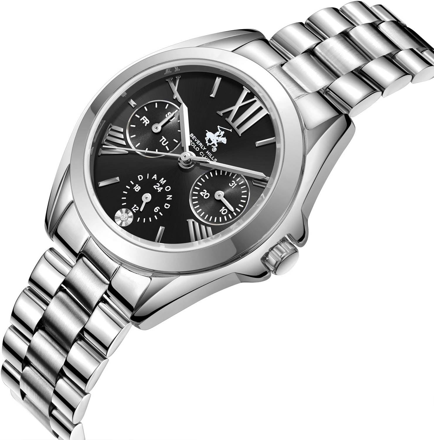Женские наручные часы Beverly Hills Polo Club BP3653C.350 с надёжным кварцевым механизмом. Минеральное стеклоМинеральное стеклоМинеральное стекло представляет собой искусственно выращенный минерал кварца. Такое стекло отличается особой устойчивостью к повреждениям и царапинам. Уступает по некоторым качествам сапфировому стеклу. устойчивое к мелким механическим повреждениям. Корпус часов изготовлен из суперметалла. Класс водозащиты: 50 метров, позволит защитить корпус от случайных брызг или капель дождя. Стальной браслет на раскладной застёжкеРаскладная застёжкаТакой тип застёжки используется только на браслетах из металла. Она никогда не раскрывается полностью, происходит разделение на 2 и более частей. Раскладывающая застёжка снизит вероятность потери часов к минимуму..