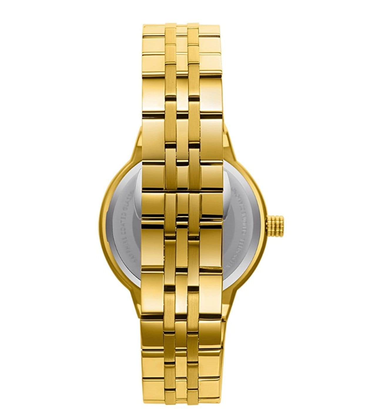 Часы дополнены стальным браслетом с IP-покрытиемIP-покрытиеМетод ионного напыления. Демонстрирует повышенную устойчивость к истиранию, окислению и химическим веществам. Под воздействием высокого давления и температуры около 1500°C молекулы металла надёжно соединяются с частицами корпуса часов. и удобной застёжкой-бабочкойЗастёжка "бабочка"Такой вид застёжки дополняется предохранителями, помогающими избежать случайного раскрытия браслета. Обладают изящным исполнением. , обеспечивающей комфорт и надёжную фиксацию на руке.