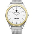 Американские часы Beverly Hills Polo Club BP3710X.230, кварцевый механизм с высокой точностью. Класс водозащиты: 50 метров, позволит защитить корпус от случайных брызг или капель дождя. Корпус часов изготовлен из стали. Стальной браслет миланского плетения на раскладном замкеРаскладной замокДанный вариант застежки используется только на часах с металлическим браслетом. Отличительная особенность такого крепления в том, что длина браслета становится универсальной и вы можете самостоятельно отрегулировать нужный вам размер – застежка просто двигается по браслету часов.. Минеральное стеклоМинеральное стеклоМинеральное стекло представляет собой искусственно выращенный минерал кварца. Такое стекло отличается особой устойчивостью к повреждениям и царапинам. Уступает по некоторым качествам сапфировому стеклу. устойчивое к мелким механическим повреждениям. Неподвижный безельБезельВнешний ободок, закрепляющий стекло. В спортивных часах так называется поворотное кольцо с делениями на циферблате, выполняет роль таймера – замеряет отрезки времени на шкале. Неподвижный безель – элемент декора. Однонаправленно вращающийся безель на дайверских часах позволяет фиксировать моменты погружения и выныривания на поверхность. из нержавеющей стали с IP-покрытиемIP-покрытиеМетод ионного напыления. Демонстрирует повышенную устойчивость к истиранию, окислению и химическим веществам. Под воздействием высокого давления и температуры около 1500°C молекулы металла надёжно соединяются с частицами корпуса часов..
