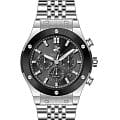 Циферблат защищен минеральным стекломМинеральное стеклоМинеральное стекло представляет собой искусственно выращенный минерал кварца. Такое стекло отличается особой устойчивостью к повреждениям и царапинам. Уступает по некоторым качествам сапфировому стеклу. с сапфировым покрытием, которое устойчиво к появлению царапин и сохраняет чистоту взгляда на протяжении длительного времени. Стрелки оснащены люминесцентным покрытиемЛюминесцентное покрытиеПозволяет считывать показания времени в темноте. Производители наносят на стрелки, часовые индексы, безель или поверхность циферблата светонакопительный состав, дающий холодное свечение., обеспечивающим отличную видимость даже при слабом освещении. БезельБезельВнешний ободок, закрепляющий стекло. В спортивных часах так называется поворотное кольцо с делениями на циферблате, выполняет роль таймера – замеряет отрезки времени на шкале. Неподвижный безель – элемент декора. Однонаправленно вращающийся безель на дайверских часах позволяет фиксировать моменты погружения и выныривания на поверхность. с IP-покрытиемIP-покрытиеМетод ионного напыления. Демонстрирует повышенную устойчивость к истиранию, окислению и химическим веществам. Под воздействием высокого давления и температуры около 1500°C молекулы металла надёжно соединяются с частицами корпуса часов..