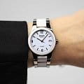 Женские немецкие титановые часы Boccia Titanium Circle-Oval 3189-01, кварцевый механизм с высокой точностью. Сапфировое стеклоСапфировое стеклоПрочный и надёжный материал из кристалла сапфира синтетического происхождения, характеризующийся особой твёрдостью и устойчивостью к царапинам и повреждениям. устойчивое к появлению царапин, обладающее высокой прозрачностью. Корпус изготовлен из титана. Неподвижный безельБезельВнешний ободок, закрепляющий стекло. В спортивных часах так называется поворотное кольцо с делениями на циферблате, выполняет роль таймера – замеряет отрезки времени на шкале. Неподвижный безель – элемент декора. Однонаправленно вращающийся безель на дайверских часах позволяет фиксировать моменты погружения и выныривания на поверхность. из керамикиВысокотехнологичная керамикаИнновационный запатентованный Rado материал с гладкой или матовой поверхностью. Керамика за счёт кристаллической структуры обладает повышенной устойчивостью от возникновения царапин. Материал способен принимать температуру тела человека, обеспечивая невероятный комфорт при ношении.. Циферблат с метками в виде арабских цифр. Окошко даты в положении 3 часов. Класс водозащиты: 50 метров, позволит защитить корпус от случайных брызг или капель дождя. Совместный браслет из титана и керамикиВысокотехнологичная керамикаИнновационный запатентованный Rado материал с гладкой или матовой поверхностью. Керамика за счёт кристаллической структуры обладает повышенной устойчивостью от возникновения царапин. Материал способен принимать температуру тела человека, обеспечивая невероятный комфорт при ношении. на раскладной застёжкеРаскладная застёжкаТакой тип застёжки используется только на браслетах из металла. Она никогда не раскрывается полностью, происходит разделение на 2 и более частей. Раскладывающая застёжка снизит вероятность потери часов к минимуму..
