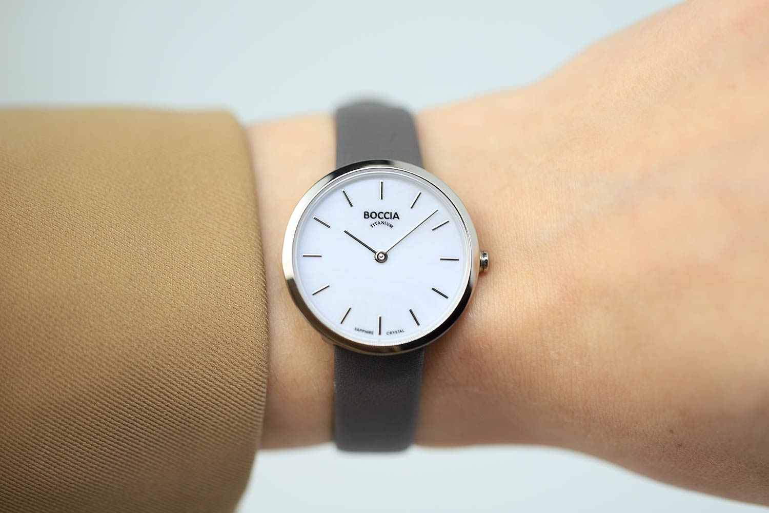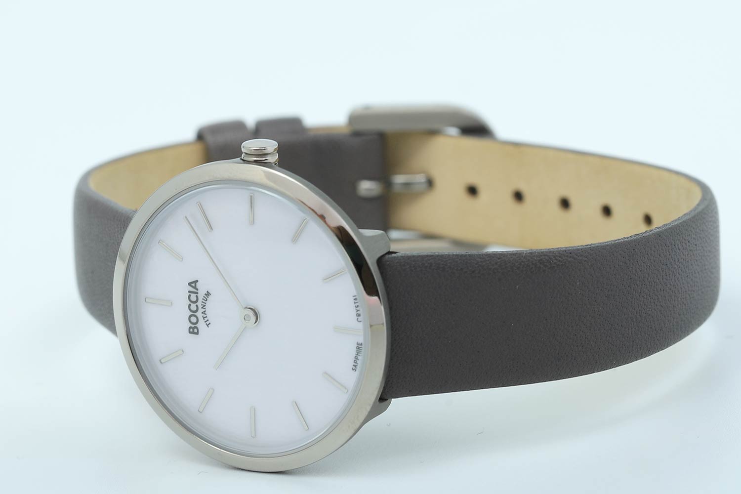 Мужские немецкие титановые часы Boccia Titanium 3279-07, кварцевый механизм с высокой точностью. Сапфировое стеклоСапфировое стеклоПрочный и надёжный материал из кристалла сапфира синтетического происхождения, характеризующийся особой твёрдостью и устойчивостью к царапинам и повреждениям. устойчивое к появлению царапин, обладающее высокой прозрачностью. Корпус изготовлен из титана. Класс водозащиты: 30 метров, позволит защитить корпус от случайных брызг или капель дождя. Кожаный ремешок на стандартной застёжке.