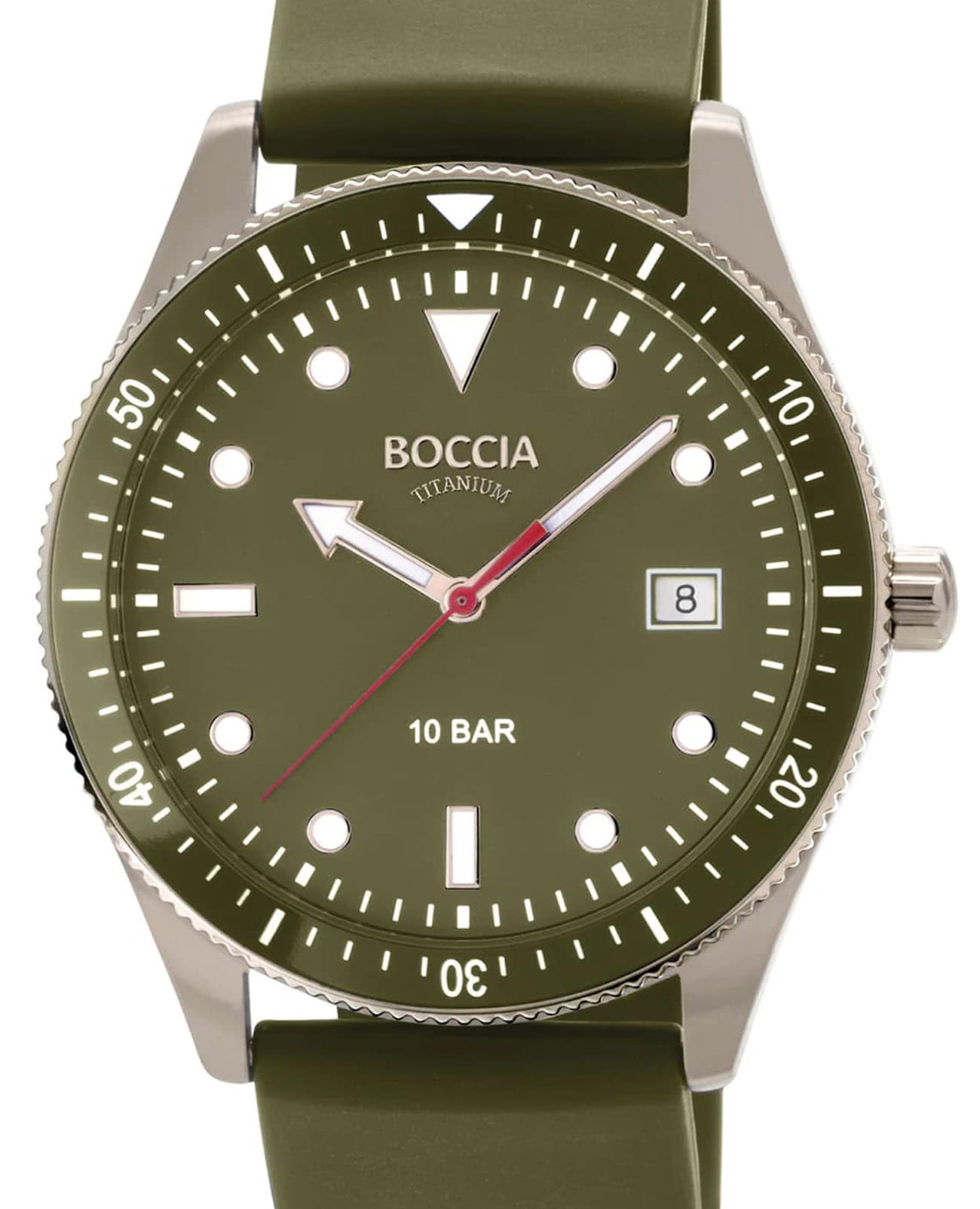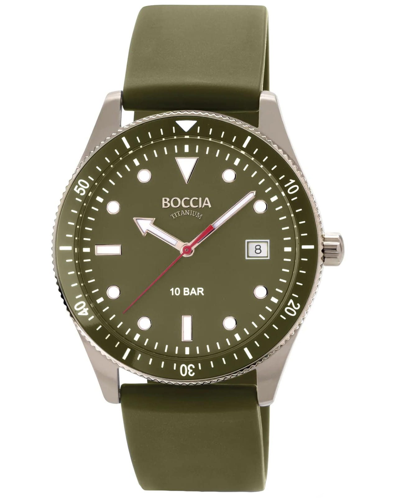 Мужские немецкие титановые часы Boccia Titanium 3664-03, кварцевый механизм с высокой точностью. Минеральное стеклоМинеральное стеклоМинеральное стекло представляет собой искусственно выращенный минерал кварца. Такое стекло отличается особой устойчивостью к повреждениям и царапинам. Уступает по некоторым качествам сапфировому стеклу. устойчивое к появлению царапин, обладающее высокой прозрачностью. Корпус изготовлен из титана. Окошко даты в положении 3 часов. Класс водозащиты: 100 метров, позволит защитить корпус от случайных брызг или капель дождя. Поворотный безельБезельВнешний ободок, закрепляющий стекло. В спортивных часах так называется поворотное кольцо с делениями на циферблате, выполняет роль таймера – замеряет отрезки времени на шкале. Неподвижный безель – элемент декора. Однонаправленно вращающийся безель на дайверских часах позволяет фиксировать моменты погружения и выныривания на поверхность. из титана с PVD-покрытиемPVDУльтратонкое покрытие наносится в технике вакуумного напыления, сочетает в себе нитрид титана особой прочности со слоем золота или оксида хрома. Несёт в себе декоративную или защитную функцию.. Каучуковый ремешок.