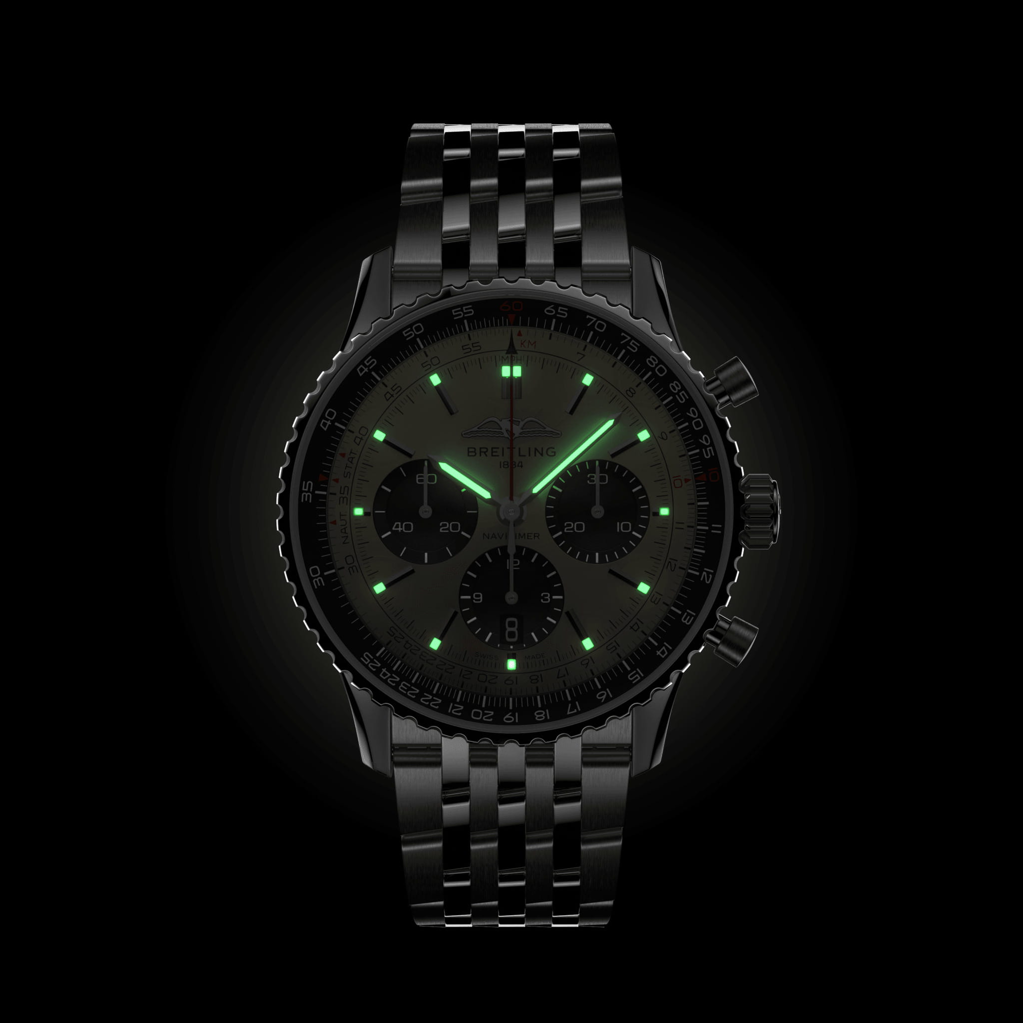Мужские швейцарские часы-хронографХронографФункция позволяет измерять отрезки времени с особой точностью: часы, минуты, секунды. Верным признаком хронографа является наличие на циферблате 3 дополнительных окошек-счётчиков. с секундомеромСекундомерСекундоме́р — прибор, способный измерять интервалы времени с точностью до долей секунды. Breitling Navitimer B01 Chronograph 43 AB0138241K1A1, механический механизм (автоматический калибр) с высокой точностью. Сапфировое стеклоСапфировое стеклоПрочный и надёжный материал из кристалла сапфира синтетического происхождения, характеризующийся особой твёрдостью и устойчивостью к царапинам и повреждениям. с антибликовым покрытием устойчивое к появлению царапин, обладающее высокой прозрачностью. Класс водозащиты: 30 метров, позволит защитить корпус от случайных брызг или капель дождя. Корпус часов изготовлен из стали. Чередующиеся полированные и матовые металлические элементы создают блестящую, но в то же время сдержанную отделку. Стальной браслет с застёжкой-бабочкой с кнопкамиЗастёжка "бабочка"Такой вид застёжки дополняется предохранителями, помогающими избежать случайного раскрытия браслета. Обладают изящным исполнением. . С момента своего дебюта 70 лет назад icon от Breitling претерпел множество модификаций, но этот новый Navitimer отражает его самые классические функции, дополняя их современными усовершенствованиями. Сплющенная логарифмическая линейка и выпуклый кристалл создают иллюзию более изящного профиля. Шкала тахиметраТахиметрРазмеченная шкала, располагается на ободке или безеле часов. Тахиметр позволяет рассчитать скорость на определённом участке пути, расстояние измеряется в километрах или милях. на циферблате. Часы имеют сертификат COSCСертификат COSCОфициальный сертификат, подтверждающий то, что часы ходят с особо высокой точностью. Для получения документа часы подвергаются тестовым испытаниям, разработанным швейцарским институтом тестирования хронометров COSC. Допустимая норма для механических часов -4/+6 секунд в день, для кварцевых моделей +/- 0,07 секунд в день.. Окошко даты находится в положении 6 часов. Стрелки и метки с люминесцентным покрытиемЛюминесцентное покрытиеПозволяет считывать показания времени в темноте. Производители наносят на стрелки, часовые индексы, безель или поверхность циферблата светонакопительный состав, дающий холодное свечение.. И если есть одно обновление, которое наверняка вызовет ностальгию, так это возвращение крыльев AOPA в исходное положение на 12 часов. Вот уже 70 лет оригинальные часы Breitling pilot в равной степени нравятся как авиаторам, так и ценителям вкуса. Это самые культовые часы Breitling, которые носят астронавты в космосе и крупнейшие звезды на земле, и одни из самых узнаваемых часов всех времен.