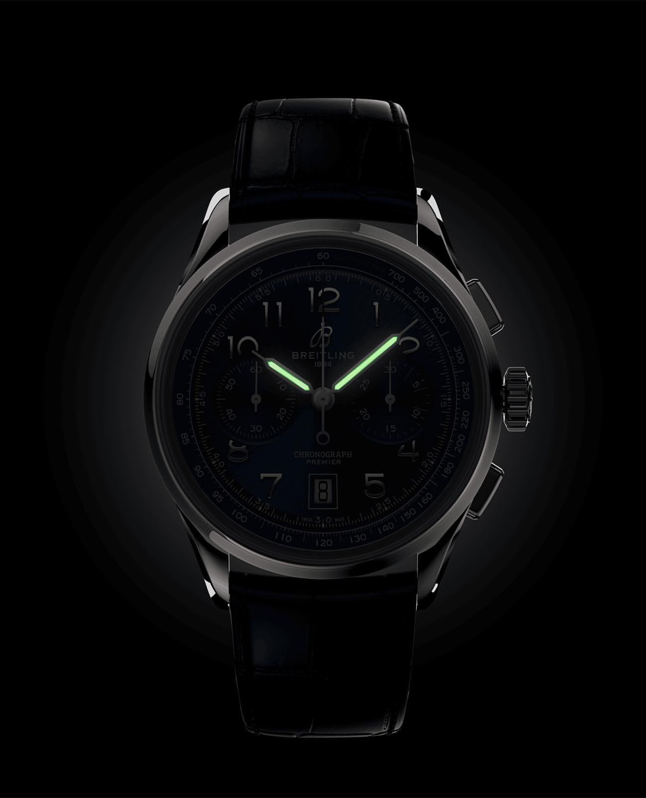 Мужские шаейцарские часы-хронографХронографФункция позволяет измерять отрезки времени с особой точностью: часы, минуты, секунды. Верным признаком хронографа является наличие на циферблате 3 дополнительных окошек-счётчиков. Breitling Premier B01 Chronograph 42 AB0145171C1P2. Механический механизм (автоматический калибр) с высокой точностью. Сапфировое стеклоСапфировое стеклоПрочный и надёжный материал из кристалла сапфира синтетического происхождения, характеризующийся особой твёрдостью и устойчивостью к царапинам и повреждениям. устойчивое к появлению царапин, обладающее высокой прозрачностью. Стрелки с люминесцентным покрытиемЛюминесцентное покрытиеПозволяет считывать показания времени в темноте. Производители наносят на стрелки, часовые индексы, безель или поверхность циферблата светонакопительный состав, дающий холодное свечение.. Класс водозащиты: 100 метров, позволит плавать, нырять и заниматься другими водными видами спорта. Корпус часов изготовлен из нержавеющей стали. Кожаный ремешок с раскладной застёжкойРаскладная застёжкаТакой тип застёжки используется только на браслетах из металла. Она никогда не раскрывается полностью, происходит разделение на 2 и более частей. Раскладывающая застёжка снизит вероятность потери часов к минимуму.. Циферблат со шкалой тахиметраТахиметрРазмеченная шкала, располагается на ободке или безеле часов. Тахиметр позволяет рассчитать скорость на определённом участке пути, расстояние измеряется в километрах или милях.. Окошко даты находится в положении 6 часов.