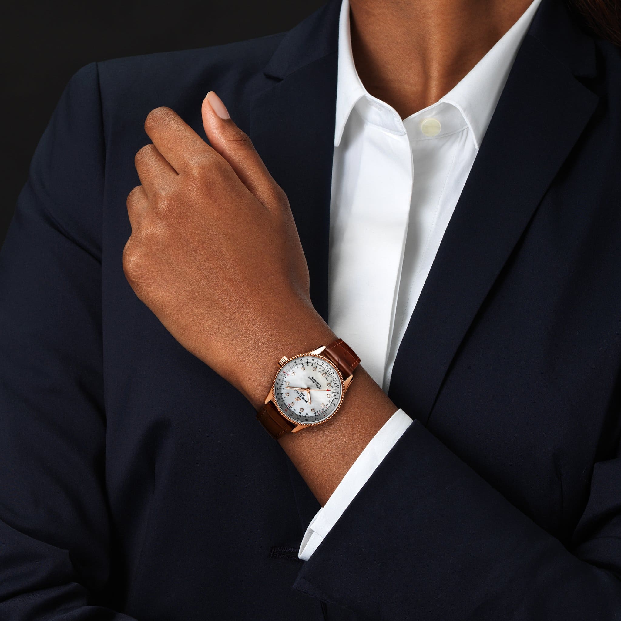 Navitimer Automatic 35 – изящная модель, воплотившая в себе особенности дизайна знаменитых исторических моделей Breitling и самые современные технологии. Украшенный фигурным безелем корпус, диаметр которого составляет 35 мм, предлагается из различных материалов, в том числе нержавеющей стали и 18-каратного розового золота.
