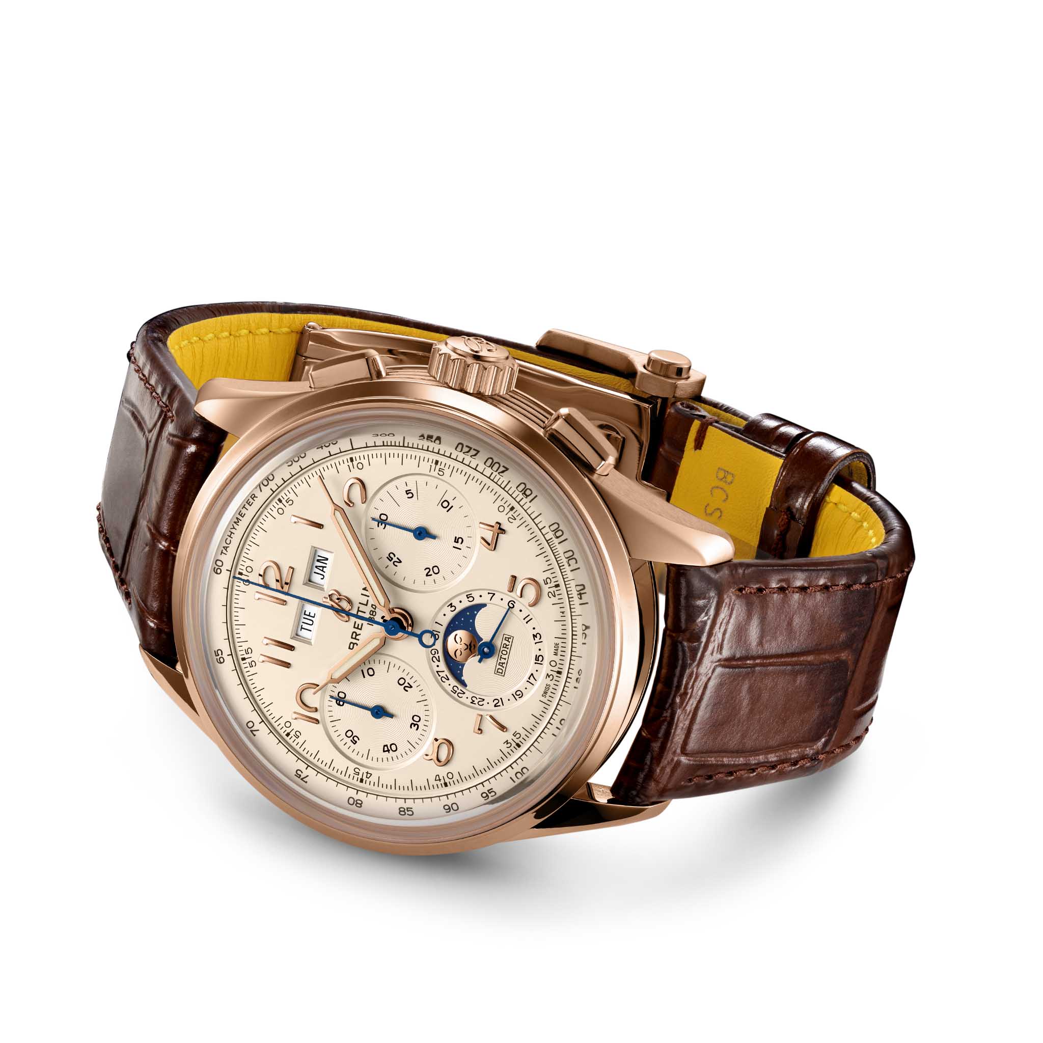 Новое поколение хронографов Premier в невероятно элегантном исполнении демонстрирует высочайший уровень часового мастерства Breitling целым рядом сложных функций: Chronograph, Duograph и Datora. Помимо традиционных прямоугольных кнопок и арабских цифр хронографа, обновленная модель Premier обладает такими изящными элементами дизайна, как бороздки по бокам корпуса, прозрачная задняя крышка из сапфирового стекла и винтажные стрелки.