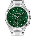 Мужские кварцевые часы-хронографХронографФункция позволяет измерять отрезки времени с особой точностью: часы, минуты, секунды. Верным признаком хронографа является наличие на циферблате 3 дополнительных окошек-счётчиков. Bulova CURV 96A297 – отражающий идеальное сочетание современного дизайна, надёжности и функциональности. Элегантный облик станет превосходным завершением образа, наделив его индивидуальным характером. Корпус из нержавеющей стали серебристого цвета, диаметром 44 мм идеально сбалансирован и элегантен. Защиту циферблата обеспечивает прочное сапфировое стеклоСапфировое стеклоПрочный и надёжный материал из кристалла сапфира синтетического происхождения, характеризующийся особой твёрдостью и устойчивостью к царапинам и повреждениям. с антибликовым покрытиемАнтибликовое покрытиеСлой оксида металла в 0,13-0,3 микрон, благодаря которому стекло часов не бликует и не отражает свет. Антибликовое покрытие уменьшает отражение света в 10 раз, обеспечивая отличную читаемость показателей циферблата. гарантирующее четкость показаний. Центральные часовая и минутная стрелки, секундная стрелка вынесена на малый циферблат. Стальной браслет на застёжке-бабочке с кнопкамиЗастёжка "бабочка"Такой вид застёжки дополняется предохранителями, помогающими избежать случайного раскрытия браслета. Обладают изящным исполнением. обеспечивает комфортное ношение. Водозащита 30 метров позволит защитить корпус от случайных брызг или капель дождя. Стрелки с люминесцентным покрытиемЛюминесцентное покрытиеПозволяет считывать показания времени в темноте. Производители наносят на стрелки, часовые индексы, безель или поверхность циферблата светонакопительный состав, дающий холодное свечение. позволяющие легко определять время даже в темноте. Эта модель – отличный выбор для тех, кто ищет сочетание стиля, качества и функциональности. Часы станут не только полезным аксессуаром, но и выразительным элементом вашего имиджа.