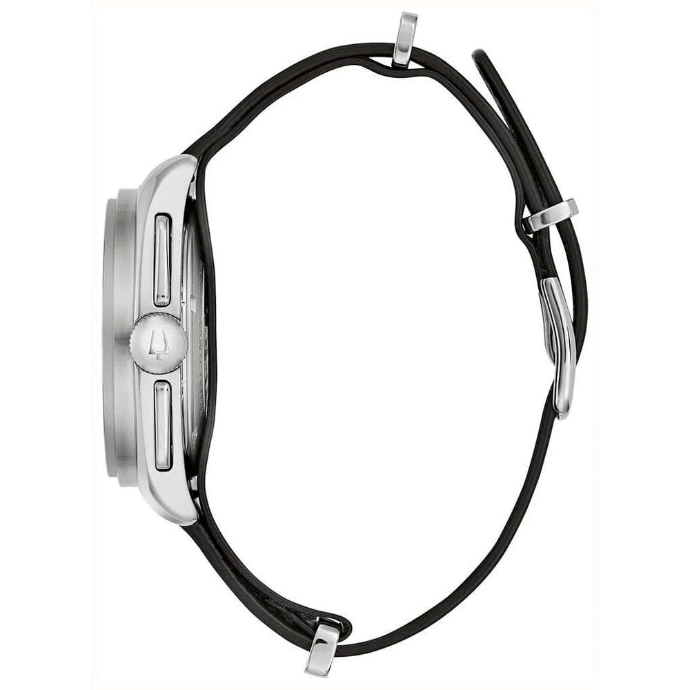 Мужские кварцевые часы-хронографХронографФункция позволяет измерять отрезки времени с особой точностью: часы, минуты, секунды. Верным признаком хронографа является наличие на циферблате 3 дополнительных окошек-счётчиков. Bulova Lunar Pilot Chronograph 96K115 – отражающий идеальное сочетание современного дизайна, надёжности и функциональности. Элегантный облик станет превосходным завершением образа, наделив его индивидуальным характером. Корпус из нержавеющей стали серебристого цвета, диаметром 43.5 мм идеально сбалансирован и элегантен. Сапфировое стеклоСапфировое стеклоПрочный и надёжный материал из кристалла сапфира синтетического происхождения, характеризующийся особой твёрдостью и устойчивостью к царапинам и повреждениям. защищает циферблат от царапин и устойчивое к мелким механическим повреждениям. Стальной браслет на застёжке-бабочке с кнопкамиЗастёжка "бабочка"Такой вид застёжки дополняется предохранителями, помогающими избежать случайного раскрытия браслета. Обладают изящным исполнением. обеспечивает комфортное ношение. Водозащита 50 метров позволит защитить корпус от случайных брызг или капель дождя. Шкала тахиметраТахиметрРазмеченная шкала, располагается на ободке или безеле часов. Тахиметр позволяет рассчитать скорость на определённом участке пути, расстояние измеряется в километрах или милях. на внешнем кольце циферблата. Стрелки и метки с люминесцентным покрытиемЛюминесцентное покрытиеПозволяет считывать показания времени в темноте. Производители наносят на стрелки, часовые индексы, безель или поверхность циферблата светонакопительный состав, дающий холодное свечение. позволяющие легко определять время даже в темноте.Эта модель – отличный выбор для тех, кто ищет сочетание стиля, качества и функциональности. Часы станут не только полезным аксессуаром, но и выразительным элементом вашего имиджа. В комплекте кожаный ремешок.