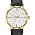 Мужские кварцевые часы Bulova Classic 97B172 – отражающий идеальное сочетание современного дизайна, надёжности и функциональности. Элегантный облик станет превосходным завершением образа, наделив его индивидуальным характером. Корпус из нержавеющей стали с IP-покрытиемIP-покрытиеМетод ионного напыления. Демонстрирует повышенную устойчивость к истиранию, окислению и химическим веществам. Под воздействием высокого давления и температуры около 1500°C молекулы металла надёжно соединяются с частицами корпуса часов. золотистого цвета, диаметром 40 мм идеально сбалансирован и элегантен. Минеральное стеклоМинеральное стеклоМинеральное стекло представляет собой искусственно выращенный минерал кварца. Такое стекло отличается особой устойчивостью к повреждениям и царапинам. Уступает по некоторым качествам сапфировому стеклу. защищает циферблат от царапин и устойчивое к мелким механическим повреждениям. Кожаный ремешок на стандартной застежке обеспечивает комфортное ношение. Водозащита 30 метров позволит защитить корпус от случайных брызг или капель дождя. Эта модель – отличный выбор для тех, кто ищет сочетание стиля, качества и функциональности. Часы станут не только полезным аксессуаром, но и выразительным элементом вашего имиджа.