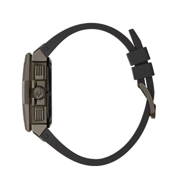 Мужские кварцевые часы-хронографХронографФункция позволяет измерять отрезки времени с особой точностью: часы, минуты, секунды. Верным признаком хронографа является наличие на циферблате 3 дополнительных окошек-счётчиков. с секундомеромСекундомерСекундоме́р — прибор, способный измерять интервалы времени с точностью до долей секунды. Bulova Precisionist 98B358 – отражающий идеальное сочетание современного дизайна, надёжности и функциональности. Сверхточный кварцевый хронограф. Частота колебаний механизма составляет 262 кГц , что превышает мировой стандарт в 8 раз. Корпус из нержавеющей стали с PVD-покрытиемPVDУльтратонкое покрытие наносится в технике вакуумного напыления, сочетает в себе нитрид титана особой прочности со слоем золота или оксида хрома. Несёт в себе декоративную или защитную функцию. черного цвета, диаметром 44.5 мм идеально сбалансирован и надежен. Сапфировое стеклоСапфировое стеклоПрочный и надёжный материал из кристалла сапфира синтетического происхождения, характеризующийся особой твёрдостью и устойчивостью к царапинам и повреждениям. защищает циферблат от царапин и устойчивое к механическим повреждениям. На черном циферблате есть окошко календаря. Силиконовый ремешок на стандартной застежке обеспечивает комфортное ношение. Водозащита 300 метров позволит плавать, нырять и заниматься другими водными видами спорта. Стрелки и метки с люминесцентным покрытиемЛюминесцентное покрытиеПозволяет считывать показания времени в темноте. Производители наносят на стрелки, часовые индексы, безель или поверхность циферблата светонакопительный состав, дающий холодное свечение. позволяющие легко определять время даже в темноте. Эта модель – отличный выбор для тех, кто ищет сочетание стиля, качества и функциональности. Часы станут не только полезным аксессуаром, но и выразительным элементом вашего имиджа.
