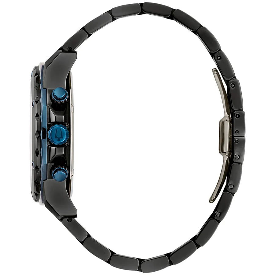 Мужские кварцевые часы-хронографХронографФункция позволяет измерять отрезки времени с особой точностью: часы, минуты, секунды. Верным признаком хронографа является наличие на циферблате 3 дополнительных окошек-счётчиков. Bulova Marine Star 98B410 – отражающий идеальное сочетание современного дизайна, надёжности и функциональности. Элегантный облик станет превосходным завершением образа, наделив его индивидуальным характером. Корпус из нержавеющей стали с IP-покрытиемIP-покрытиеМетод ионного напыления. Демонстрирует повышенную устойчивость к истиранию, окислению и химическим веществам. Под воздействием высокого давления и температуры около 1500°C молекулы металла надёжно соединяются с частицами корпуса часов., диаметром 44 мм идеально сбалансирован и элегантен. Защиту циферблата обеспечивает прочное минеральное стеклоМинеральное стеклоМинеральное стекло представляет собой искусственно выращенный минерал кварца. Такое стекло отличается особой устойчивостью к повреждениям и царапинам. Уступает по некоторым качествам сапфировому стеклу. гарантирующее четкость показаний. Браслет из нержавеющей стали с IP-покрытиемIP-покрытиеМетод ионного напыления. Демонстрирует повышенную устойчивость к истиранию, окислению и химическим веществам. Под воздействием высокого давления и температуры около 1500°C молекулы металла надёжно соединяются с частицами корпуса часов. на застёжке-бабочке с кнопкамиЗастёжка "бабочка"Такой вид застёжки дополняется предохранителями, помогающими избежать случайного раскрытия браслета. Обладают изящным исполнением.  обеспечивает комфортное ношение. Водозащита 100 метров позволит плавать, нырять и заниматься другими водными видами спорта. Стрелки с люминесцентным покрытиемЛюминесцентное покрытиеПозволяет считывать показания времени в темноте. Производители наносят на стрелки, часовые индексы, безель или поверхность циферблата светонакопительный состав, дающий холодное свечение. позволяющие легко определять время даже в темноте. Эта модель – отличный выбор для тех, кто ищет сочетание стиля, качества и функциональности. Часы станут не только полезным аксессуаром, но и выразительным элементом вашего имиджа.