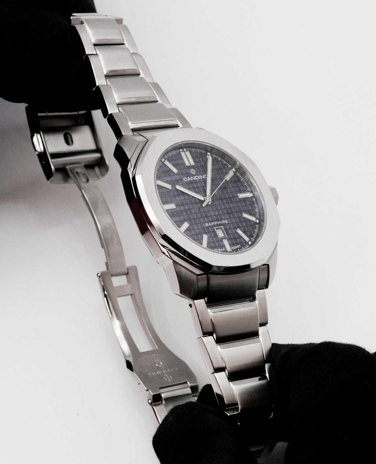 Мужские наручные часы Candino Gents Sport C4754/2 с надёжным кварцевым механизмом. Корпус и браслет часов изготовлены из нержавеющей стали. Сапфировое стеклоСапфировое стеклоПрочный и надёжный материал из кристалла сапфира синтетического происхождения, характеризующийся особой твёрдостью и устойчивостью к царапинам и повреждениям., устойчивое к мелким механическим повреждениям. Окошко даты находится в положении 6 часов. Стрелки и метки с люминесцентным покрытиемЛюминесцентное покрытиеПозволяет считывать показания времени в темноте. Производители наносят на стрелки, часовые индексы, безель или поверхность циферблата светонакопительный состав, дающий холодное свечение.. Стальной браслет на раскладной застёжкеРаскладная застёжкаТакой тип застёжки используется только на браслетах из металла. Она никогда не раскрывается полностью, происходит разделение на 2 и более частей. Раскладывающая застёжка снизит вероятность потери часов к минимуму.. Класс водозащиты: 100 метров, позволит плавать, нырять и заниматься другими водными видами спорта.