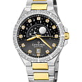 Женские наручные часы Candino Lady Elegance Moonphase C4761/4 с надёжным кварцевым механизмом. Корпус и браслет часов изготовлены из нержавеющей стали. Сапфировое стеклоСапфировое стеклоПрочный и надёжный материал из кристалла сапфира синтетического происхождения, характеризующийся особой твёрдостью и устойчивостью к царапинам и повреждениям. повышенной прозрачности, устойчивое к мелким механическим повреждениям. Стальной браслет с частичным PVD-покрытиемPVDУльтратонкое покрытие наносится в технике вакуумного напыления, сочетает в себе нитрид титана особой прочности со слоем золота или оксида хрома. Несёт в себе декоративную или защитную функцию. на раскладной застёжкеРаскладная застёжкаТакой тип застёжки используется только на браслетах из металла. Она никогда не раскрывается полностью, происходит разделение на 2 и более частей. Раскладывающая застёжка снизит вероятность потери часов к минимуму.. Стрелки и метки с люминесцентным покрытиемЛюминесцентное покрытиеПозволяет считывать показания времени в темноте. Производители наносят на стрелки, часовые индексы, безель или поверхность циферблата светонакопительный состав, дающий холодное свечение.. Двухцветный циферблат с индикатором фазы луны и безельБезельВнешний ободок, закрепляющий стекло. В спортивных часах так называется поворотное кольцо с делениями на циферблате, выполняет роль таймера – замеряет отрезки времени на шкале. Неподвижный безель – элемент декора. Однонаправленно вращающийся безель на дайверских часах позволяет фиксировать моменты погружения и выныривания на поверхность. инкрустированы цирконами. Класс водозащиты: 50 метров, позволит защитить корпус от случайных брызг или капель дождя. Окошко даты находится в положении 6 часов.
