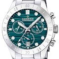 Женские часы Candino Chronos C4783/4 — сочетание элегантности и функциональности для современных женщин. Эти стильные часы-хронографХронографФункция позволяет измерять отрезки времени с особой точностью: часы, минуты, секунды. Верным признаком хронографа является наличие на циферблате 3 дополнительных окошек-счётчиков. с секундомеромСекундомерСекундоме́р — прибор, способный измерять интервалы времени с точностью до долей секунды. оснащены кварцевым механизмом, обеспечивающим точность и надежность. На безелеБезельВнешний ободок, закрепляющий стекло. В спортивных часах так называется поворотное кольцо с делениями на циферблате, выполняет роль таймера – замеряет отрезки времени на шкале. Неподвижный безель – элемент декора. Однонаправленно вращающийся безель на дайверских часах позволяет фиксировать моменты погружения и выныривания на поверхность. выгравирована секундная шкала. Сине-зеленый циферблат с функцией отображения даты в районе 6 часов добавляет модели изысканности и позволяет легко отслеживать дату. Корпус диаметром 39 мм выполнен из прочной нержавеющей стали, что гарантирует долговечность и устойчивость к внешним воздействиям. Сапфировое стеклоСапфировое стеклоПрочный и надёжный материал из кристалла сапфира синтетического происхождения, характеризующийся особой твёрдостью и устойчивостью к царапинам и повреждениям. защищает циферблат, обеспечивая высокую степень защиты от царапин и сохраняя первозданный вид часов. Стрелки и метки с люминесцентным покрытиемЛюминесцентное покрытиеПозволяет считывать показания времени в темноте. Производители наносят на стрелки, часовые индексы, безель или поверхность циферблата светонакопительный состав, дающий холодное свечение., что облегчает чтение времени даже в условиях слабого освещения. Стальной браслет на раскладной застёжкеРаскладная застёжкаТакой тип застёжки используется только на браслетах из металла. Она никогда не раскрывается полностью, происходит разделение на 2 и более частей. Раскладывающая застёжка снизит вероятность потери часов к минимуму. добавляет современный штрих и комфортно сидит на запястье, идеально подходя для повседневного ношения. С водонепроницаемостью до 100 метров эти часы подходят для активного образа жизни, позволяя не беспокоиться о случайных контактах с водой, таких как плавание или дождь.