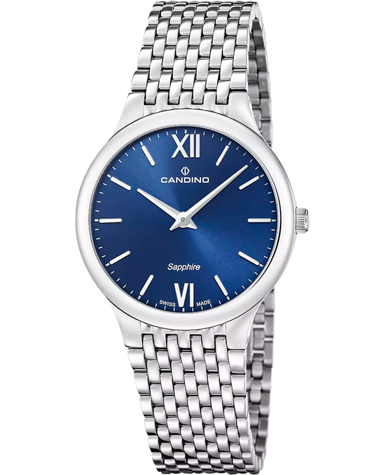 Женские кварцевые часы Candino из коллекции Series 1947 — это утончённый аксессуар, сочетающий минимализм и швейцарское качество. Корпус диаметром 33,5 мм и толщиной всего 6 мм выполнен из нержавеющей стали 316L, что делает часы особенно лёгкими и комфортными в ношении. Циферблат синего цвета оформлен двумя стрелками без индикации даты, что придаёт дизайну чистоту и элегантность. Циферблат защищён сапфировым стекломСапфировое стеклоПрочный и надёжный материал из кристалла сапфира синтетического происхождения, характеризующийся особой твёрдостью и устойчивостью к царапинам и повреждениям., устойчивым к царапинам. Механизм — кварцевый произведённый в Швейцарии. Часы оснащены стальным браслетом на застёжке «бабочка» с кнопкамиЗастёжка "бабочка"Такой вид застёжки дополняется предохранителями, помогающими избежать случайного раскрытия браслета. Обладают изящным исполнением. . Водонепроницаемость 50 м позволяет использовать часы в повседневных условиях. Гарантия — 2 года. Идеальный выбор для тех, кто ценит лаконичный стиль, точность и надёжность.