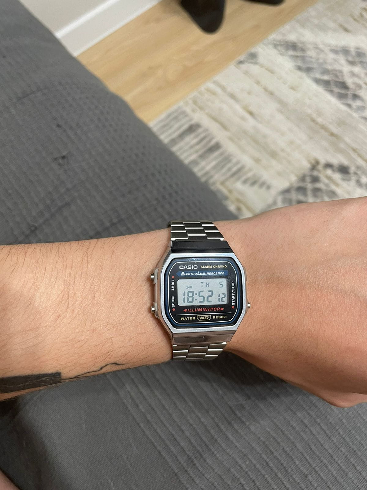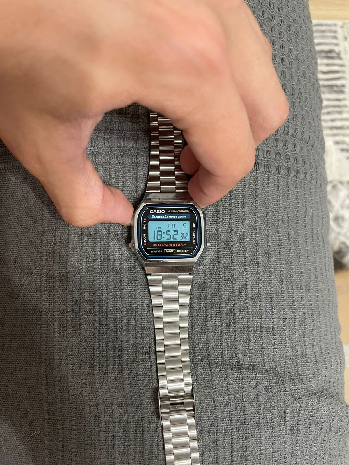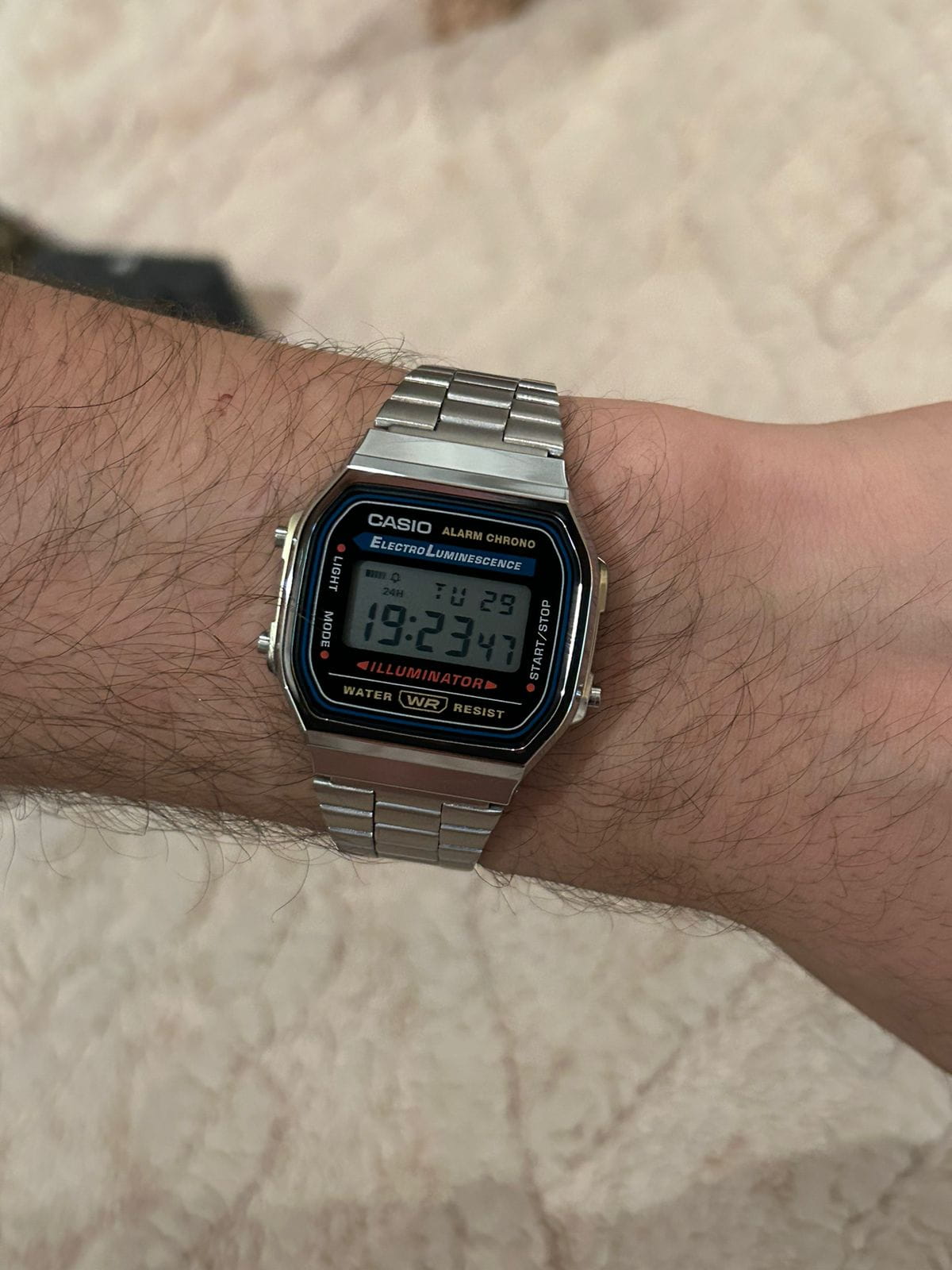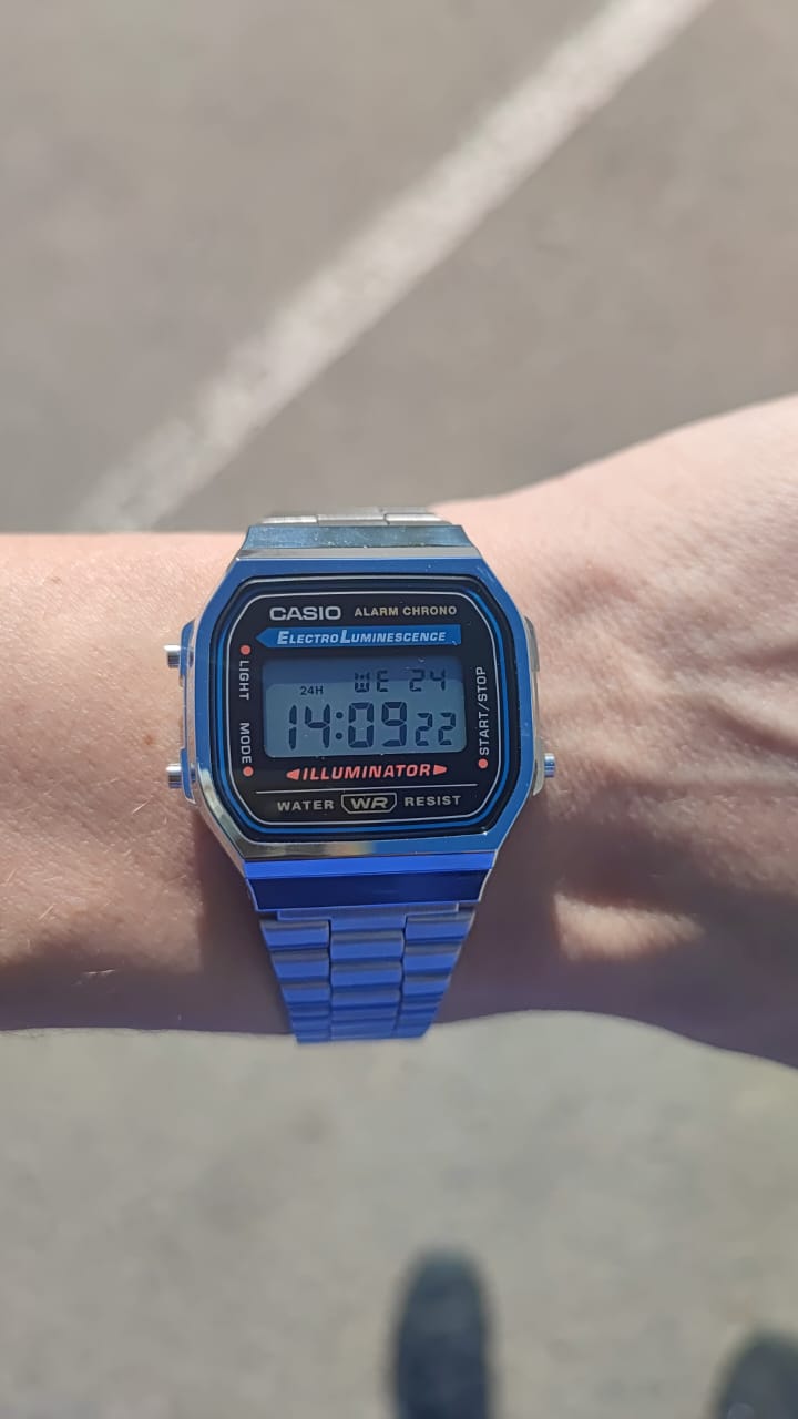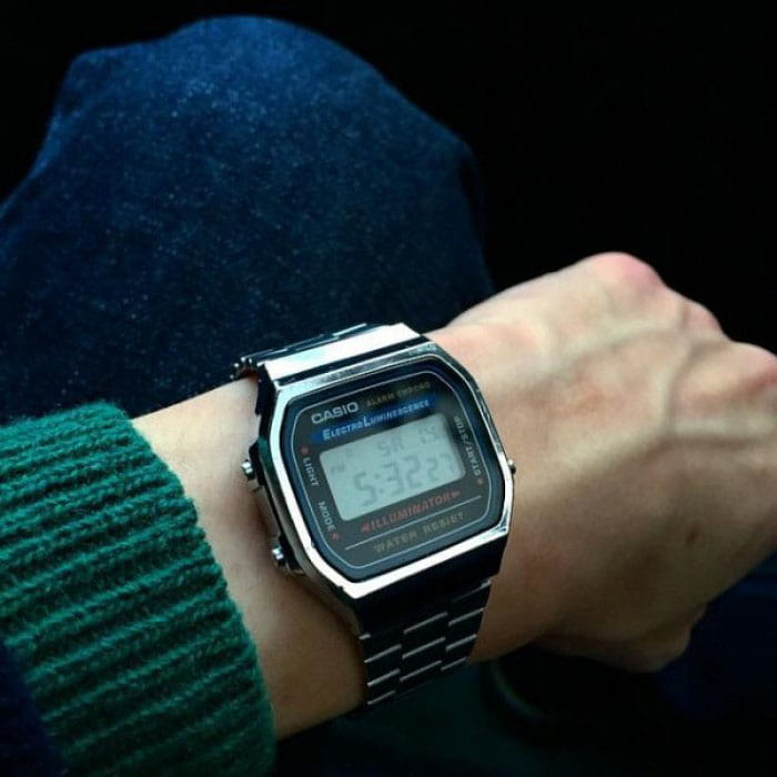 Люблю носить часы и являюсь фанатом фирмы Casio. В какой-то момент надумал купить очередную пару часов и что-нибудь из моды 80-х, тем более что сейчас эта мода возвращается. Выбор пал на данную модель. Презентабельный вид, лёгкие; очень нравится металлическая застёжка и рельефный логотип Casio на ней. Ощущение качественной сборки. На задней крышке выбит номер модуля часов и др. информация (мелочь, а приятно!). Люминисцентная подсветка - приятный голубоватый свет, равномерно распределяющийся по всей поверхности дисплея - это вам не лампа накаливания, бьющая откуда-то из угла дисплея жёлтым светом, которая к тому же нехило жрёт батарею. Несколько разочаровывает пищалка - ожидал более приятной тональности, мои G-Shock'и звучат явно приятнее. За какие-то 1 700 рублей, которые эти часы стоят в Москве, вы получаете хорошую вещь, соотношение цена / качество которой приятно поражает. Это настоящая классика на все времена, которая даже в эпоху смартфонов будет иметь своего потребителя. Плюс качество Casio, которое из года в год, из десятилетия в десятилетие остаётся неизменно высоким.