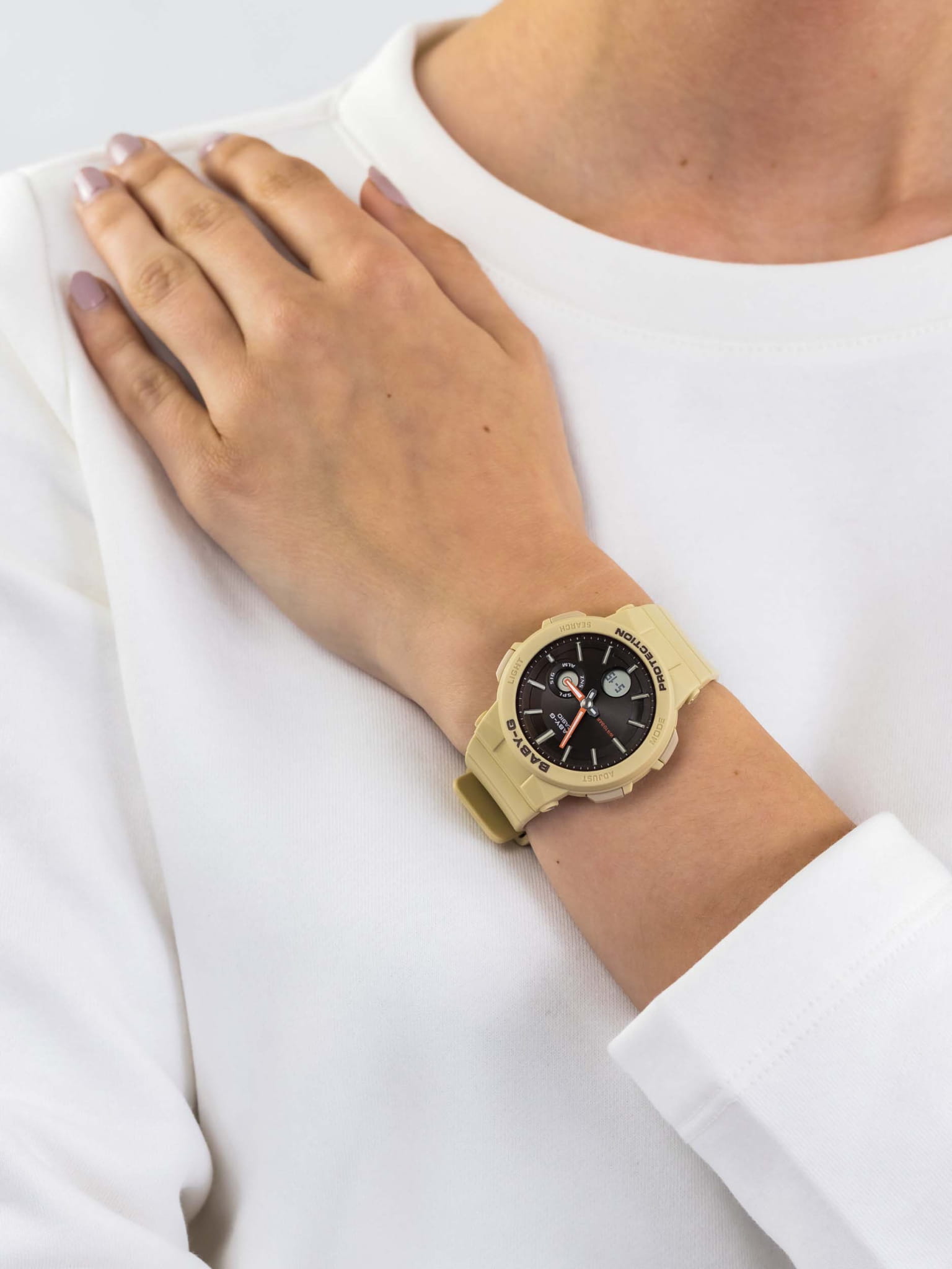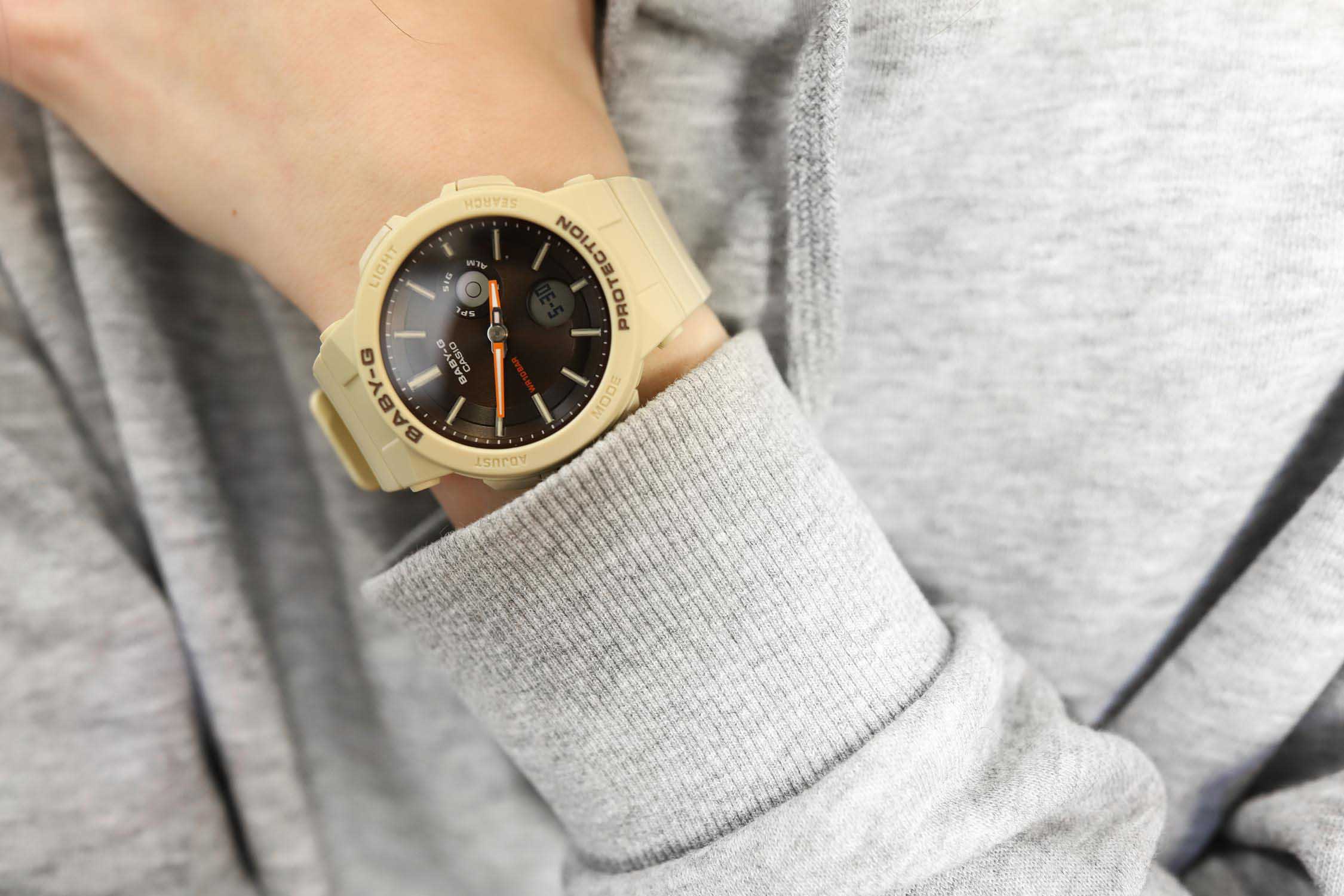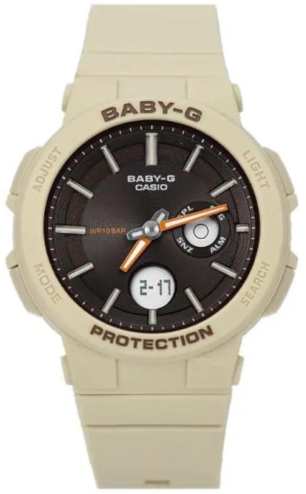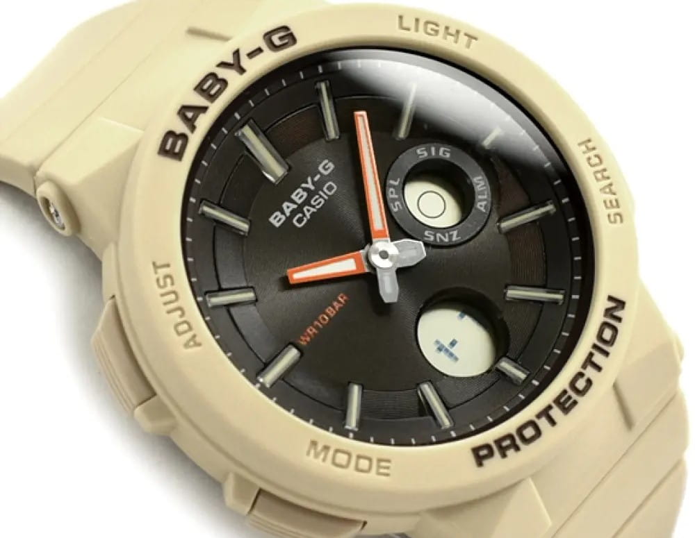 Женские японские часы Casio Baby-G BGA-255-5AER из коллекции Baby-G в бежевом исполнении подойдут любительницам спортивного стиля.