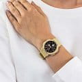 Модель обладает узорчатым циферблатом, оформленном в минималистичном дизайне. Ярко-оранжевые стрелки с люминесцентной подсветкойЛюминесцентное покрытиеПозволяет считывать показания времени в темноте. Производители наносят на стрелки, часовые индексы, безель или поверхность циферблата светонакопительный состав, дающий холодное свечение. облегчают читаемость данных. Полимерный противоударный корпусУдаропрочный корпусМеханизм заключён в корпус, выполненный из современных материалов, устойчивых к ударам, механическим повреждениям и падению с высоты: инновационный пластик, карбон, нержавеющая сталь, титан. спасает японский кварцевый механизм от повреждений и ударов. Срок службы батарейки – 3 года. Водостойкость 10 бар. Минеральное стеклоМинеральное стеклоМинеральное стекло представляет собой искусственно выращенный минерал кварца. Такое стекло отличается особой устойчивостью к повреждениям и царапинам. Уступает по некоторым качествам сапфировому стеклу. с закалкой. Гибкий полимерный браслет. Функции: 5 будильниковБудильникБуди́льник — часы, в заданный момент времени подающие звуковой, световой и/или в редких случаях другой сигнал., хронографХронографФункция позволяет измерять отрезки времени с особой точностью: часы, минуты, секунды. Верным признаком хронографа является наличие на циферблате 3 дополнительных окошек-счётчиков., таймерТаймерОтсчитывает секунды в обратном направлении в заданном интервале времени., секундомерСекундомерСекундоме́р — прибор, способный измерять интервалы времени с точностью до долей секунды., мировое времяМировое время Полезное часовое усложнение, отображающее время в основных городах и известных областях по всему миру, оно связано с часовыми поясами, удобно для путешественников и бизнесменов. – 29 часовых поясов, календарь. Габариты: 45,1 x 41 x 13,3 мм.