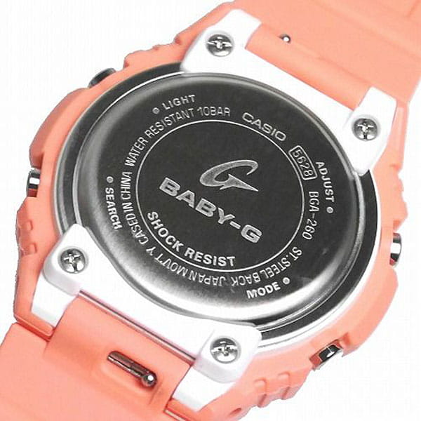 Модель из коллекции Baby-G представлена в оранжевом исполнении, солнечный оттенок акцентирует внимание на жизнерадостной натуре своего владельца. Женские японские наручные часы с противоударным корпусом Casio Baby-G BGA-260-4A, кварцевый механизм с высокой точностью. Класс водозащиты: 100 метров, позволит плавать, нырять и заниматься другими водными видами спорта. Корпус часов изготовлен из пластика. Ударопрочный корпусУдаропрочный корпусМеханизм заключён в корпус, выполненный из современных материалов, устойчивых к ударам, механическим повреждениям и падению с высоты: инновационный пластик, карбон, нержавеющая сталь, титан. защищает механизм от ударов и вибрации. Минималистичный циферблат дополнен стрелками необычной формы с яркими наконечниками, они имеют люминесцентное покрытиеЛюминесцентное покрытиеПозволяет считывать показания времени в темноте. Производители наносят на стрелки, часовые индексы, безель или поверхность циферблата светонакопительный состав, дающий холодное свечение. для лучшей считываемости показателей времени в темноте. Гибкий полимерный ремешок красиво смотрится в сочетании со спортивным или повседневным стилем. Светодиодная подсветкаСветодиодная подсветкаСветодиодная или LED-подсветка обеспечивает появление яркого холодного свечения за счёт LED-элементов - маленьких лампочек. Они потребляют минимальное количество энергии, чаще всего можно встретить 1 светодиод, в нижней части циферблата. дисплея. Цвет подсветки: белый. Подсветка NeobriteПодсветка NeobriteИспользование светонакопительных составов на основе сульфида цинка или алюмината стронция, яркий свет можно наблюдать на протяжении 6-10 часов после «зарядки» часов около источника света. обеспечивает длительное послесвечение в темноте даже после кратковременного нахождения на свету. Мировое времяМировое время Полезное часовое усложнение, отображающее время в основных городах и известных областях по всему миру, оно связано с часовыми поясами, удобно для путешественников и бизнесменов. – 27 городов (29 часовых поясов), всемирное координированное время (UTCUTCВсемирное кординационное время, не имеющее привязки к географическому положению Гринвича, основывается на атомном отсчёте времени. Регулировка времени осуществляется более точно, чем устаревшее GMT.
