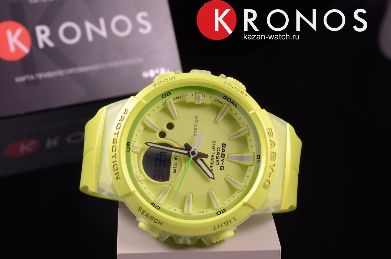 Наручные часы в зелёном цвете оснащены шагомером, счётчик измеряет количество шагов от 0 до 999999. Предусмотрена возможность установить цель на день. Размечена специальная шкала вокруг безеляБезельВнешний ободок, закрепляющий стекло. В спортивных часах так называется поворотное кольцо с делениями на циферблате, выполняет роль таймера – замеряет отрезки времени на шкале. Неподвижный безель – элемент декора. Однонаправленно вращающийся безель на дайверских часах позволяет фиксировать моменты погружения и выныривания на поверхность., достижение отметки «Goal» означает, что план выполнен. Ударопрочный корпусУдаропрочный корпусМеханизм заключён в корпус, выполненный из современных материалов, устойчивых к ударам, механическим повреждениям и падению с высоты: инновационный пластик, карбон, нержавеющая сталь, титан. сделан из прочного полимера, устойчив к падению, вибрации. Работу японского кварцевого механизма обеспечивает батарейка, рассчитанная на 2 года. Минеральное закаленное стекло. Светодиодная подсветкаСветодиодная подсветкаСветодиодная или LED-подсветка обеспечивает появление яркого холодного свечения за счёт LED-элементов - маленьких лампочек. Они потребляют минимальное количество энергии, чаще всего можно встретить 1 светодиод, в нижней части циферблата.. Водостойкость 10 бар. Включение и выключение звука кнопок. Автокалендарь, будильник, секундомер, таймер обратного отсчёта. Указание второго часового пояса. Габариты: 42,6 x 45,2 x 13,3 мм.