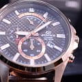 Стильные японские наручные кварцевые мужские часы. Круглый корпус  часов выполнен из стали с антикоррозийными свойствами с IP покрытием. Коричневый карбоновый циферблат с контрастными элементами дизайна. Водонепроницаемость 10 ATM. Минеральное стекло, устойчивое к появлению царапин. Ремешок из натуральной кожи коричневого цвета. Часы оснащены функцией хронографа.