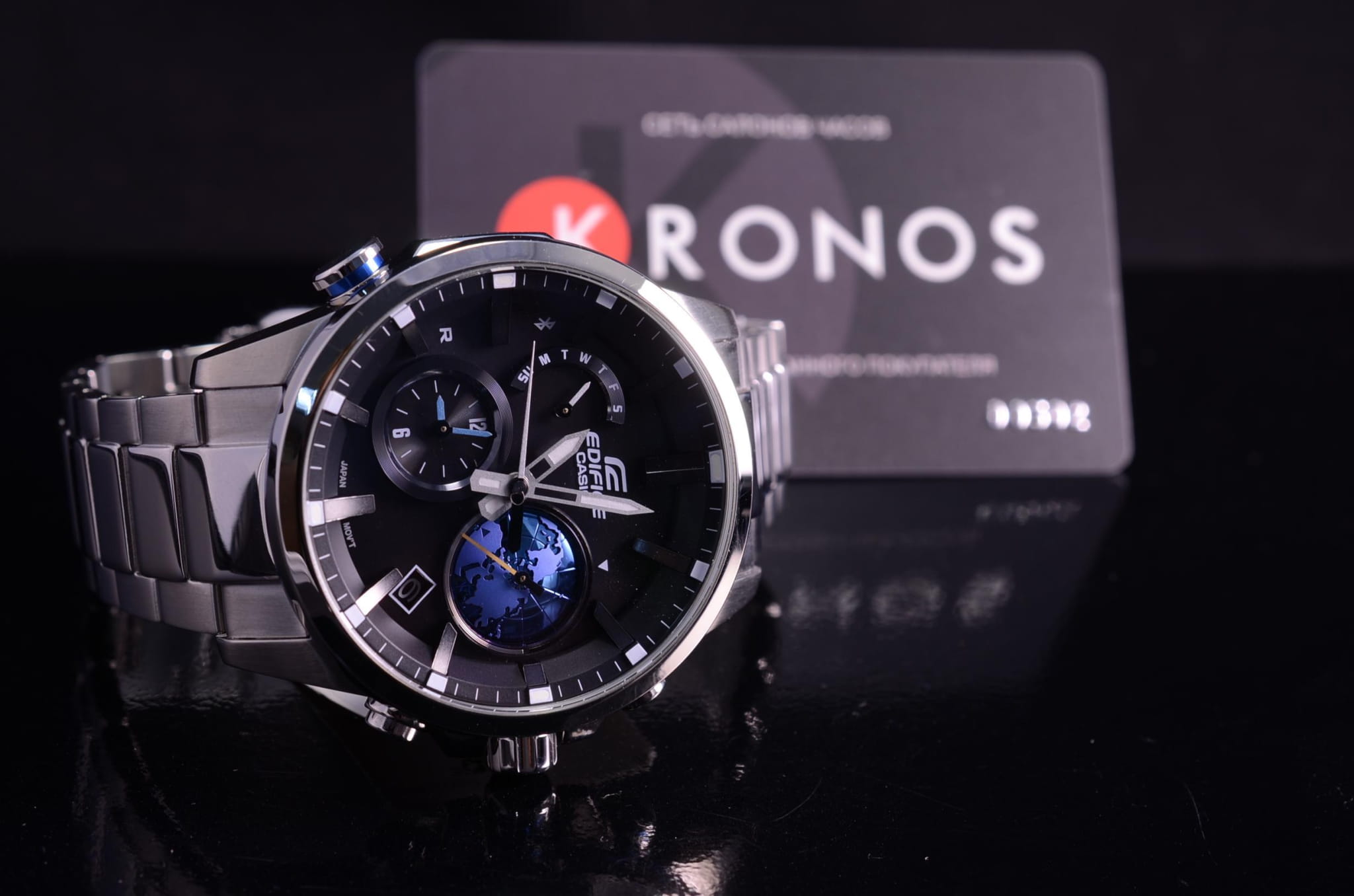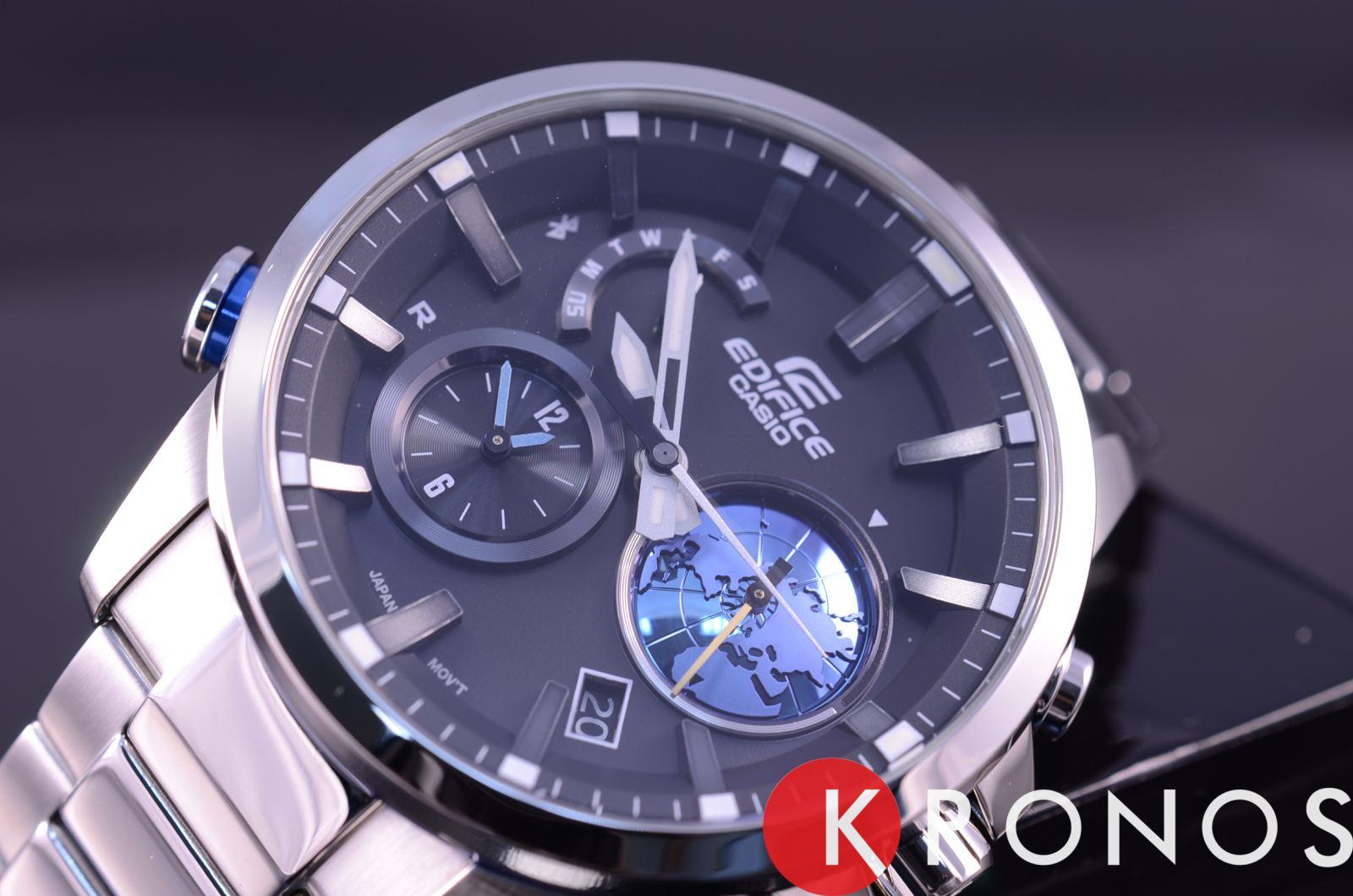 Высокотехнологичные японские наручные мужские часы. Круглый корпус и браслет часов выполнены из стали с антикоррозийным покрытием с полировкой до зеркального блеска. Темный фон циферблата и выпуклые 3D элементы дизайна. Водонепроницаемость 10 ATM. Минеральное стекло, устойчивое к появлению царапин. Сихронизация с сотовым телефоном по Bluetooth, одновременный показ времени в двух часовых поясах, функция Phone Finder. Основное новшество в часах - 3D глобус, который автоматически вращается 1 раз в сутки. Индикатор на глобусе указывает время суток.